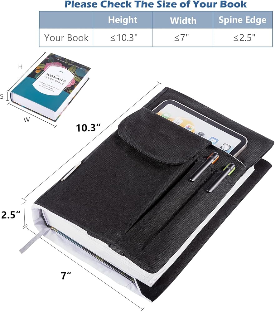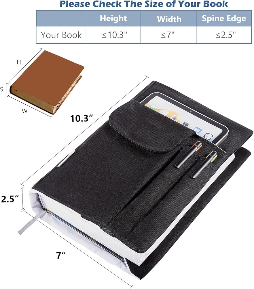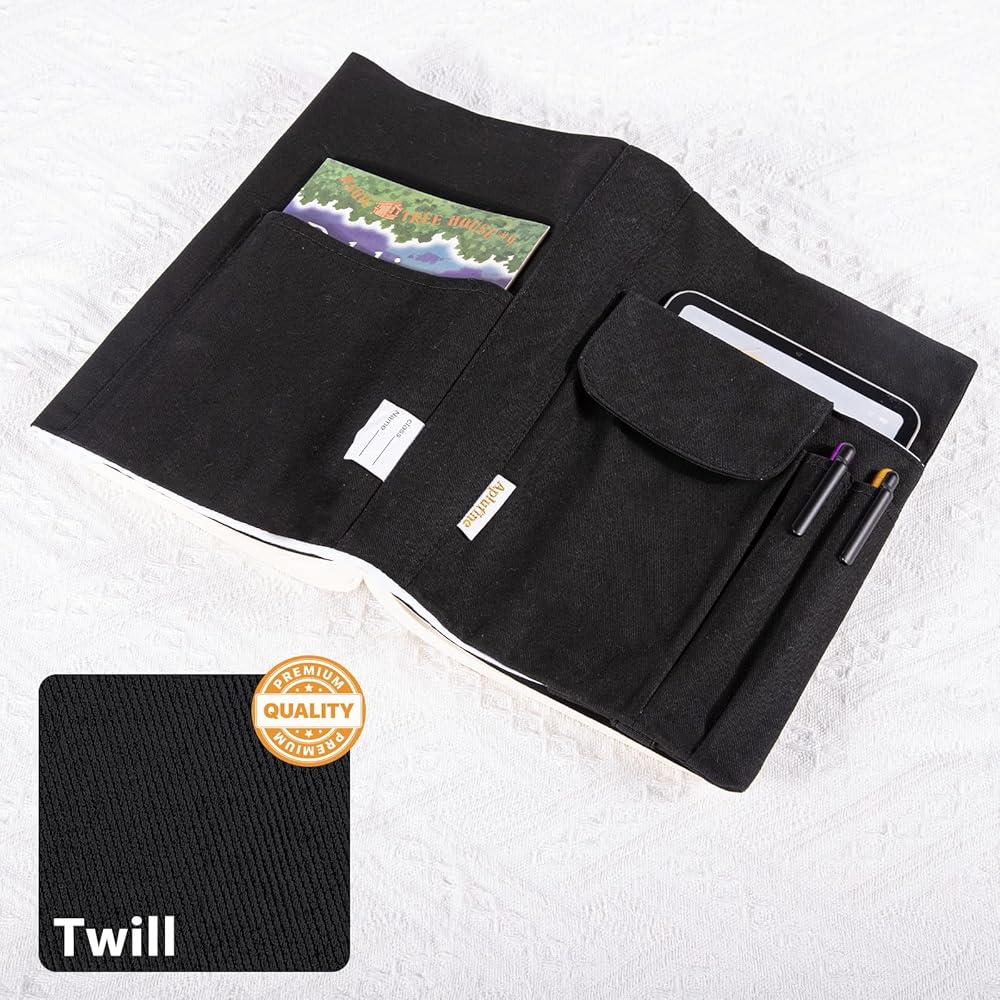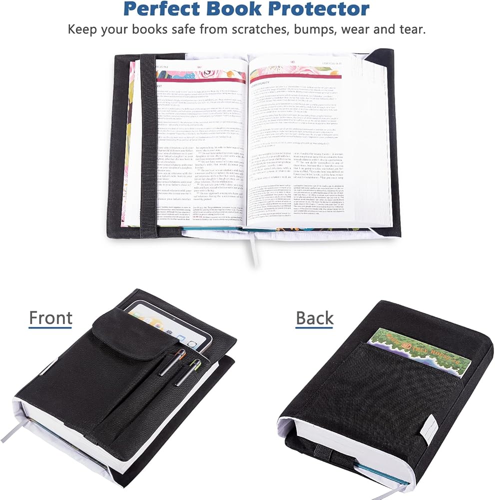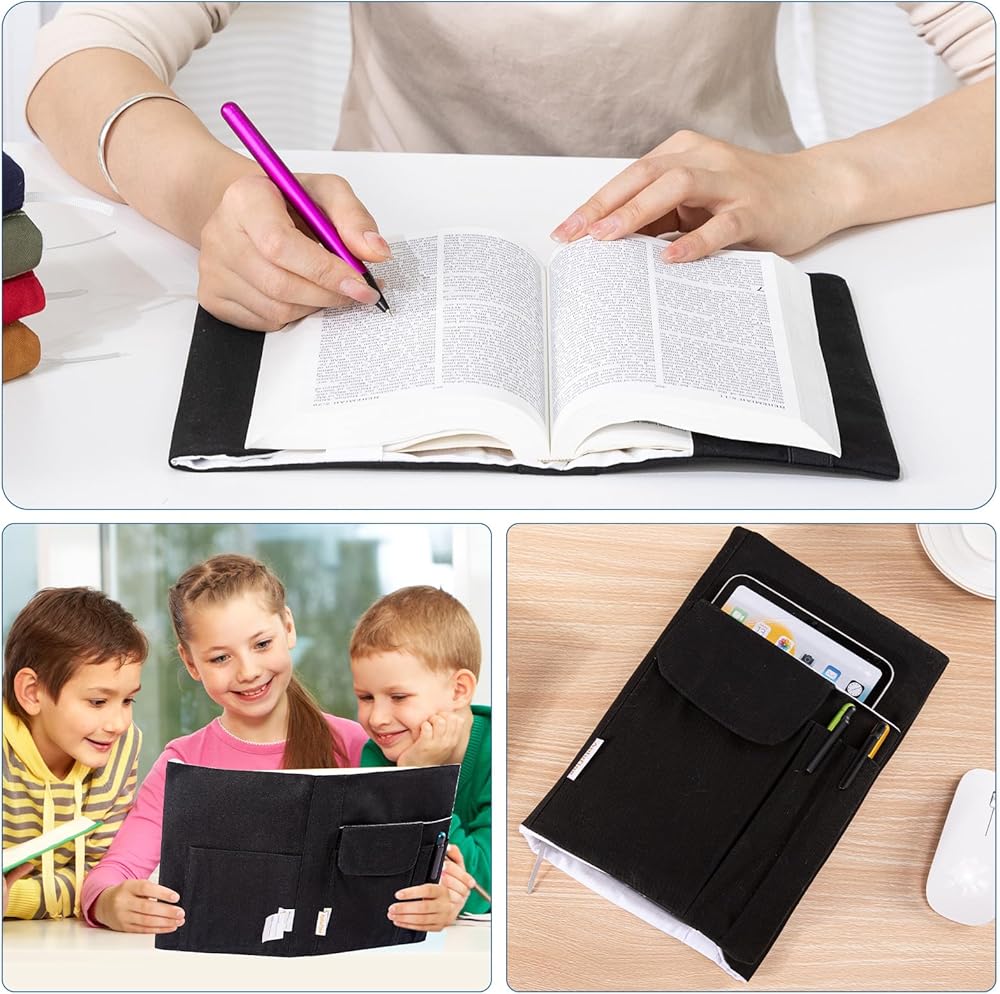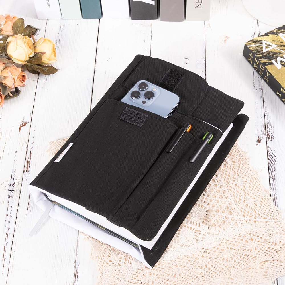 🕮جيوب عملية - يتميز غطاء الكتاب القماشي هذا بفتحة قلم مريحة وجيبين للهاتف والبطاقة والآيباد والمفتاح.