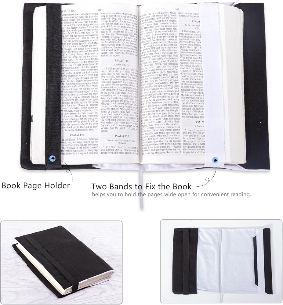 🕮 سهل الاستخدام - غطاء الكتاب القماشي هذا سهل الاستخدام للحفاظ على الكتاب مريحًا وآمنًا. يأتي مزودًا بملصق اسم/فئة وإشارة مرجعية على الشريط لتحديد موقع الصفحة بسهولة.