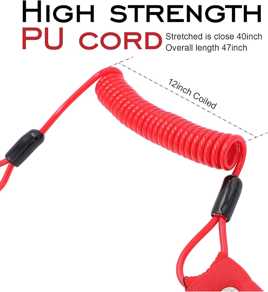 جودة عالية: حبل إيقاف إيقاف التشغيل الآمن للمحرك مصنوع من مادة البولي يوريثين عالية الجودة والمطاط وألياف النايلون، والتي توفر الأمان والمتانة ومقاومة للماء وخفيفة الوزن. حبل أمان بمفتاح إيقاف جديد تمامًا بنسبة 100%. تم تصنيعه وفقًا لمعايير مراقبة الجودة الصارمة، وتصميم محسن لتحسين المتانة.
