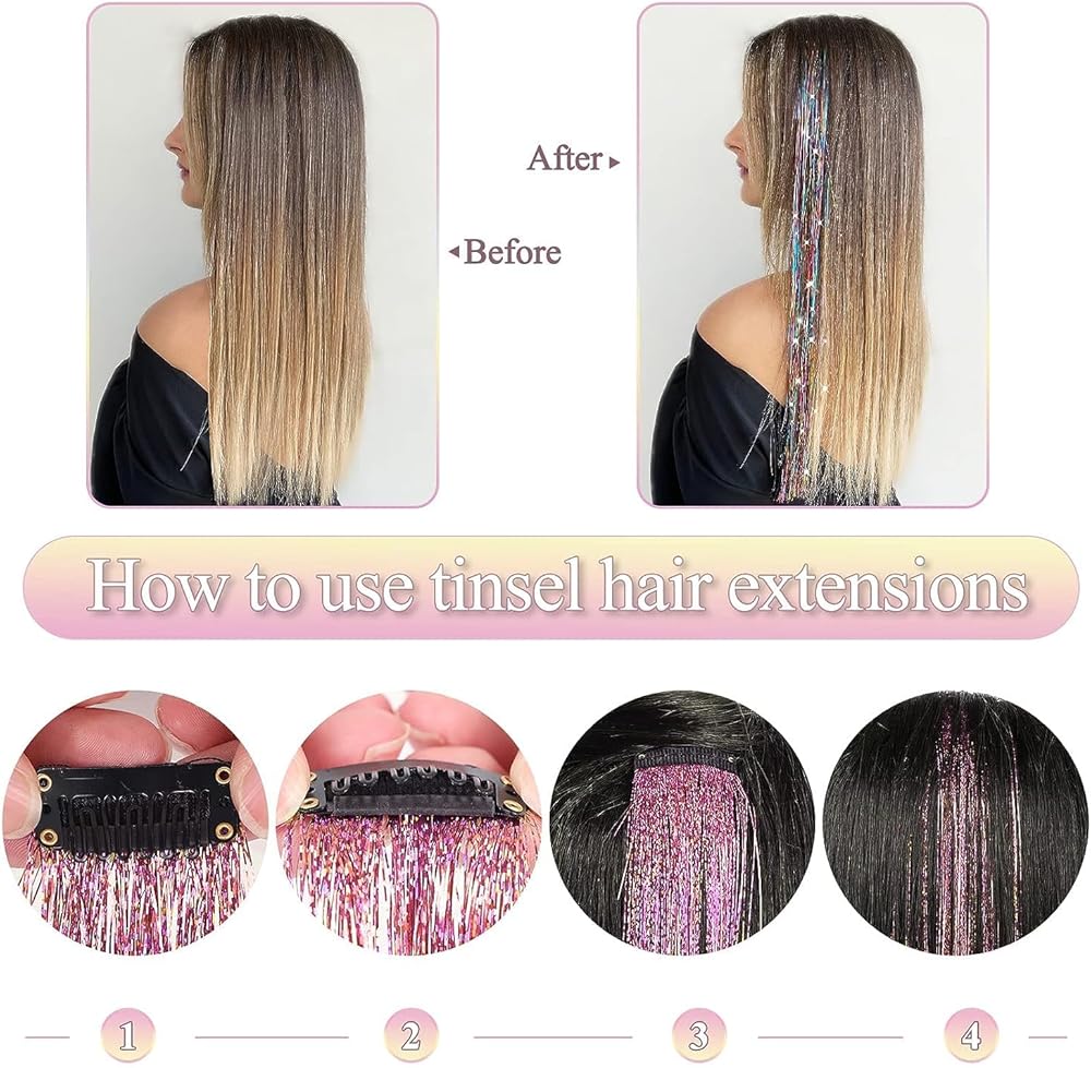 【مناسب للعديد من المناسبات】طريقة سهلة لجعل الشعر مرحاً للأطفال والكبار! سهلة الاستخدام، أي تصميم مخصص. منتج لامع يوصى به بشدة لأي عمر. هذه خصلات الشعر الجنية رائعة حقًا للحفلات أو ليلة النادي أو حفلة النوم أو رأس السنة الجديدة أو حفلات الكريسماس، فإن بذر الشعر هذا مشرق ولامع وسيلفت انتباه الناس، وأعتقد أن هذا الشعر يمكن أن يجعلك أكثر نجمًا براقًا. تأثيري الهالوين إلخ، إنه الخيار الأفضل للهدايا.