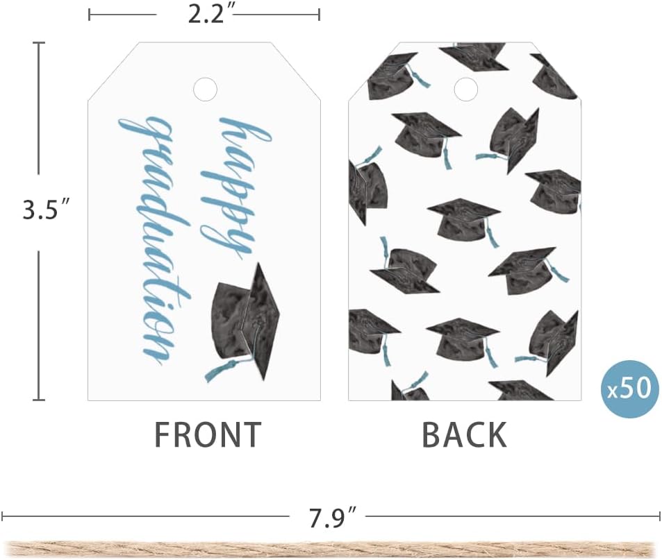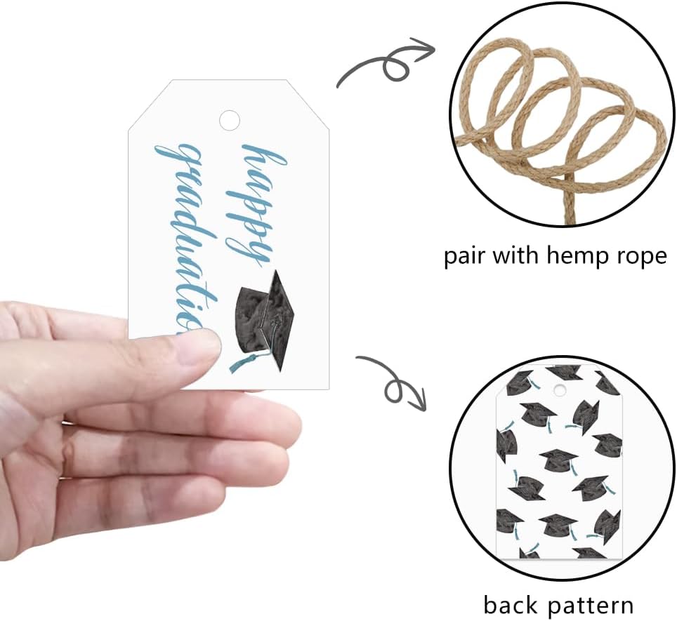 • Suitable Size: The size of the tag is about 2.2 inch x 3.5 inch, the hemp rope measures 7.9 inch x 50 Roots in length. Each graduation tag comes with holes pre - punched in the upper corners for string.