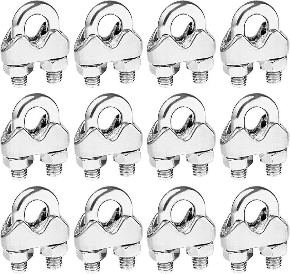 12 قطعة 1/4 بوصة M6 سلك حبل مشبك كابل المشبك ، مشبك حبل السلك ، الفولاذ المقاوم للصدأ U الترباس السرج السحابة