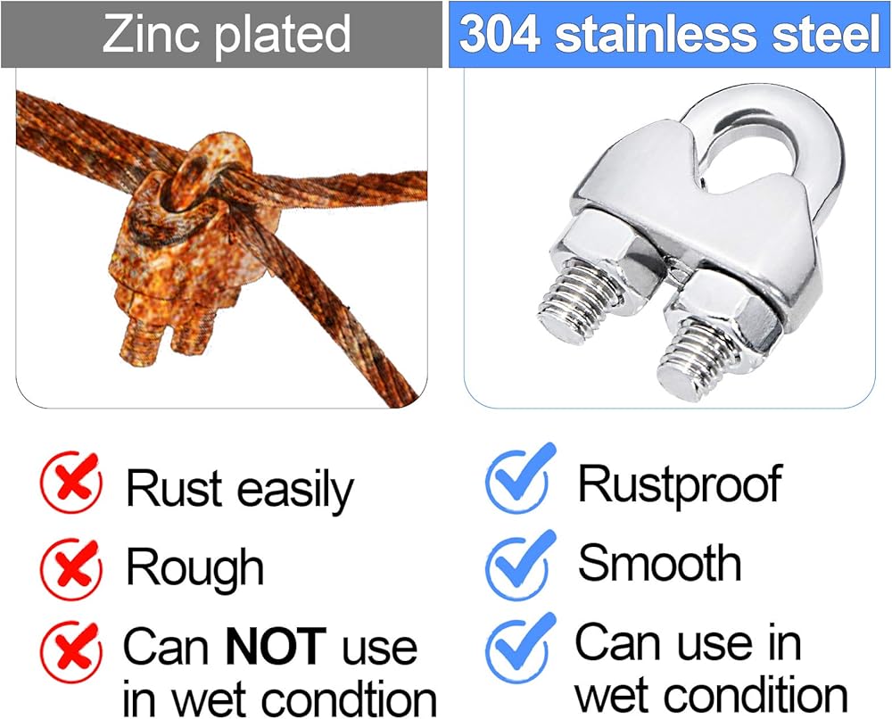 • Please pay attention to the size: our M6 wire rope cable clip clamp fit for 1/4 inches wire rope / cable.