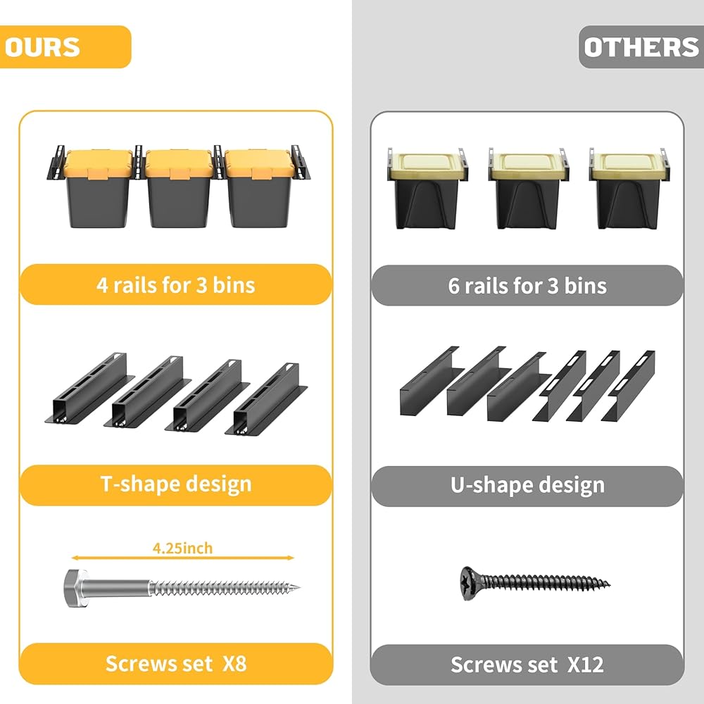 • تخزين ذكي بدون قلق: يأتي نظام قضبان التخزين العلوية لدينا مع ضمان محدود مدى الحياة لأداء دائم. يوفر التصميم المبتكر المثبت على السقف مساحة إضافية لتنظيم المرآب الخاص بك.