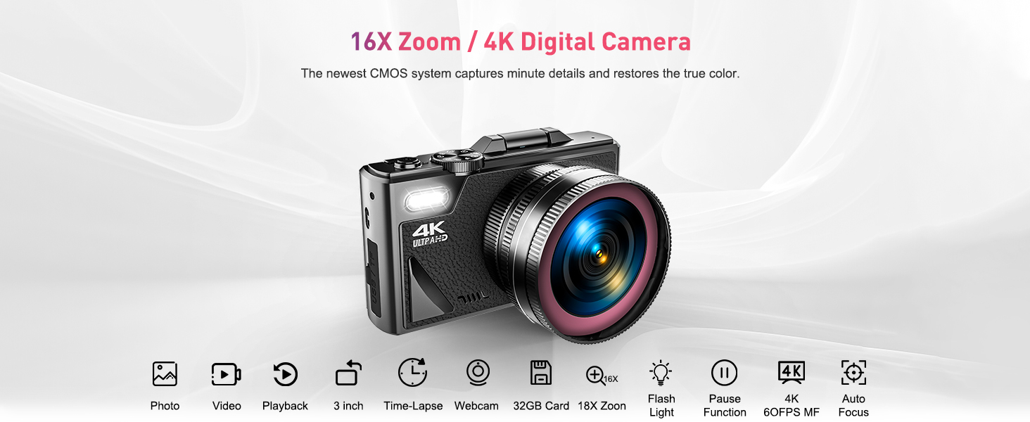 【كاميرا رقمية بتركيز تلقائي 64 ميجابكسل 4K】 يمكن للكاميرا الرقمية إنتاج مقاطع فيديو YouTube 4K والتقاط صور فائقة الوضوح بدقة 64 ميجابكسل. دقة الفيديو: 4K/2.7K/1080P/720P؛ بكسلات الصورة: 64 م/48 م/30 م/24 م/20 م/12 م/8 م/5 م/3 م، يمكن لمستشعر الصور ومقاطع الفيديو عالي الجودة التقاط كل لحظة صغيرة. تحتوي الكاميرا الرقمية 4 كيه على ثلاثة أوضاع تركيز: التركيز التلقائي، والتركيز اليدوي، والتركيز الثابت، يمكنك ضبط وضع التركيز وفقًا لاحتياجاتك لمساعدتك على التقاط وتسجيل اللحظات التي لا تنسى.