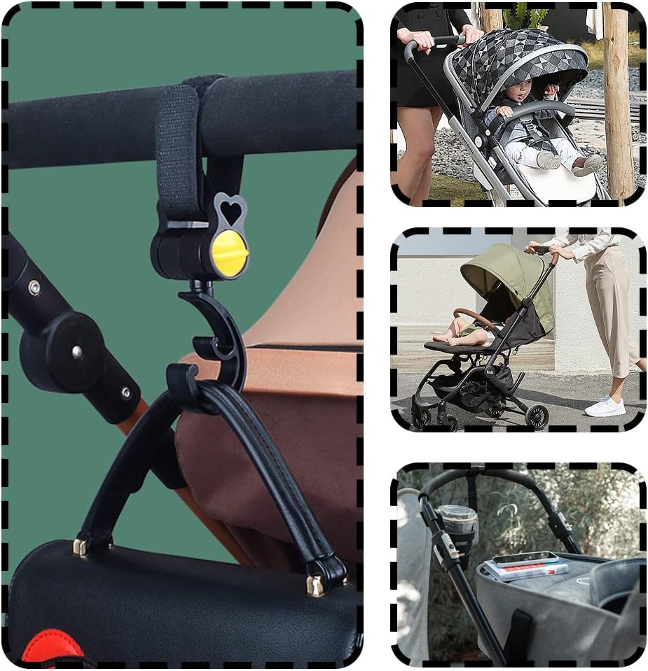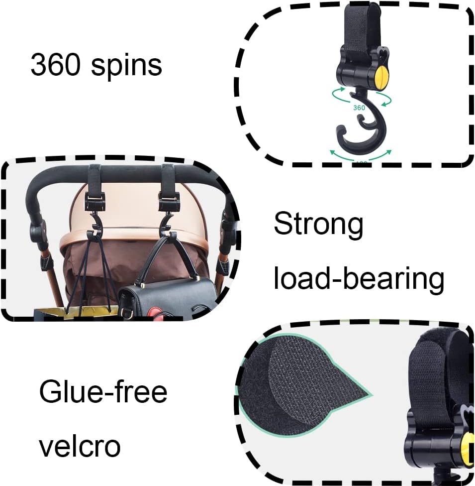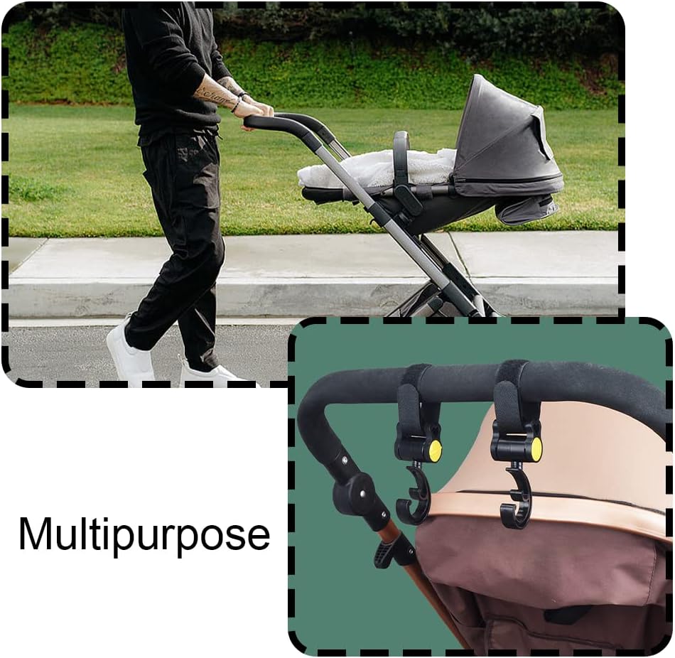 مشابك خطافية لعربة الأطفال، مشبك عربة الأطفال قابل للدوران، ملحقات عربة الأطفال المريحة، خطافات حقيبة الأم لتعليق أكياس الحفاضات، والمحفظة، ومنظم عربة الأطفال