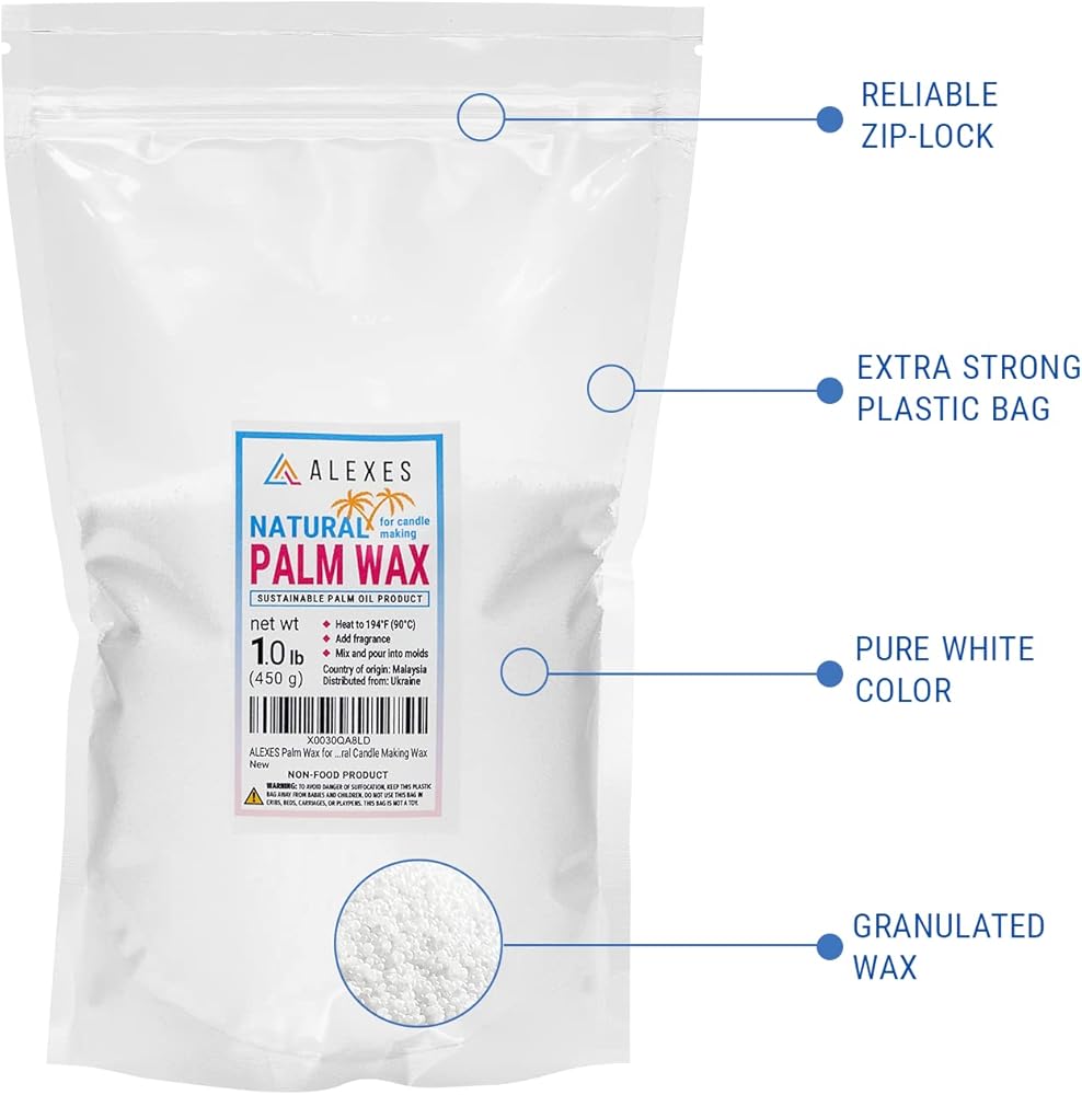 شمع النخيل من ALEXES: لصنع الشمعة الخاصة بك، قم بتسخين شمع النخيل إلى 180 درجة فهرنهايت (82 درجة مئوية)، وأضف لونًا وما يصل إلى 0.5 أونصة من أي عطر أو زيت عطري.