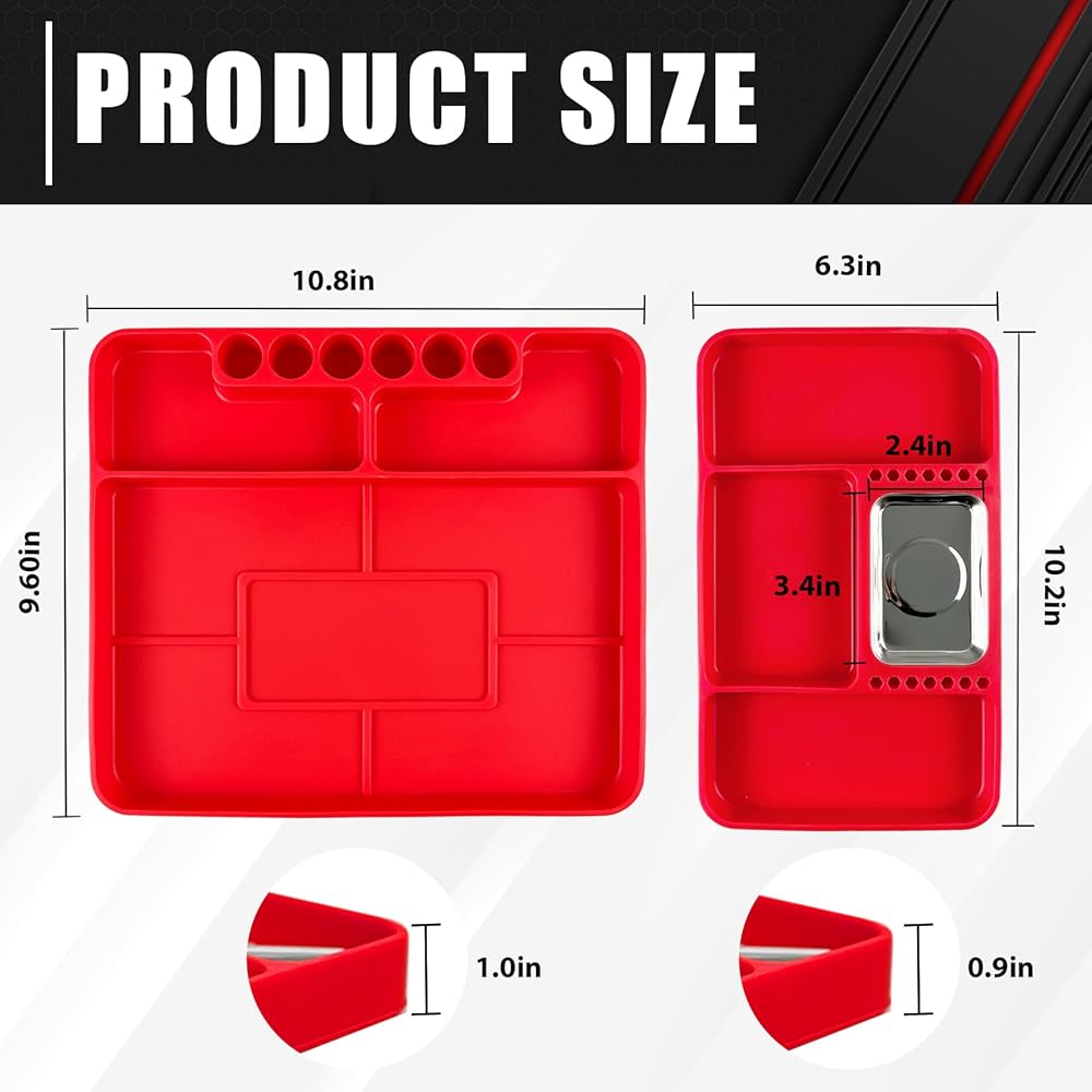 【مادة ممتازة】صينية الأدوات المرنة غير القابلة للانزلاق مصنوعة من السيليكون عالي الجودة المضاد للكهرباء الساكنة، ومقاوم للصدأ وسميك بما يكفي لمقاومة التلف. ببساطة قم بتنظيف السطح بالماء أو القليل من المنظف، وستكون مجموعة أدوات الأدوات جيدة كالجديدة.