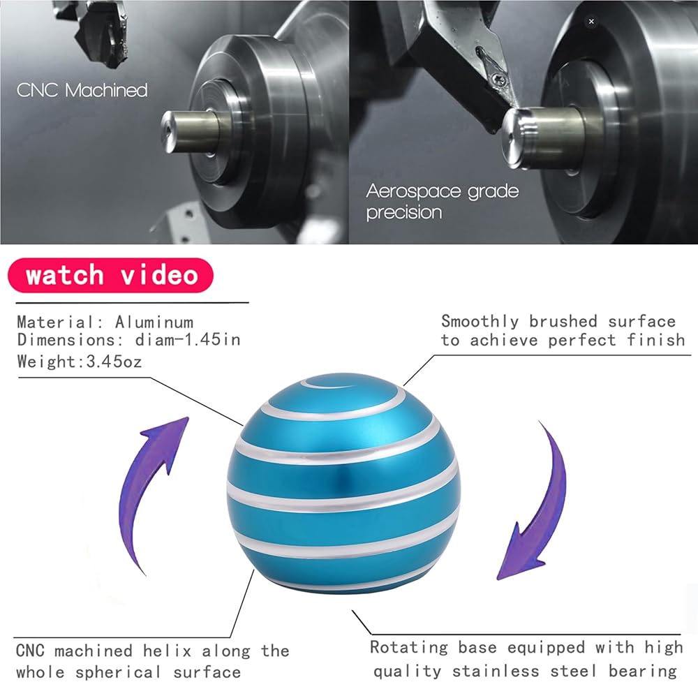 【Desk-Kinetic-Toys】It works without any electricity,you just need to rotate it with a single hand, and it can spin for more than 60 seconds. An aluminum metal toy ball, manufactured using CNC processing, is small and exquisite, measuring 1.49 inches in diameter and weighing 0.17 pounds.