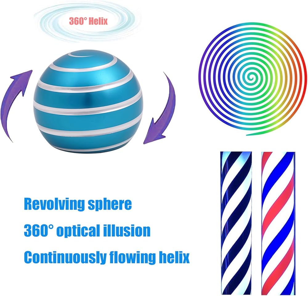 【Cool-Gadgets】The desk toys has spiral grooves milled on its surface and is equipped with high-quality bearings inside. You can easily rotate it with just one hand for more than 60 seconds, and create a 360° spiral pattern to achieve the magical effect of a full-body-optical-illusion.