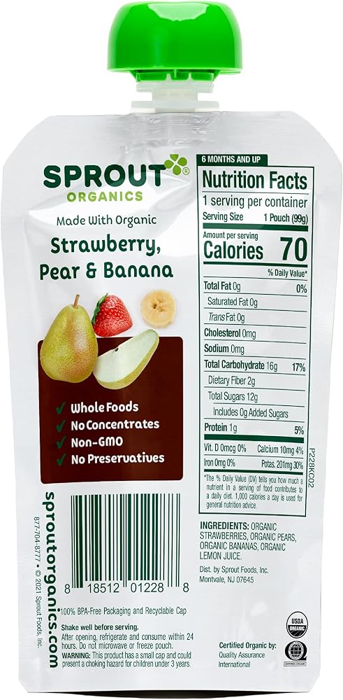 - Sprout Organics Blueberry, Banana & Oatmeal Baby Food, Kosher, 3.5 Ounces (Pack Of 6)