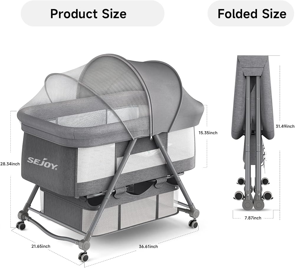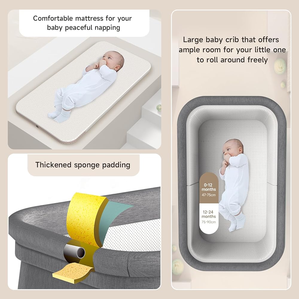 【حجم سرير الأطفال】①. مقاس سرير الأطفال غير المطوي 36.6 بوصة × 21.7 بوصة × 28.34 بوصة (72 × 55 × 72 سم)، بينما تبلغ الأبعاد المطوية 31.5 × 1.87 بوصة. القطر الداخلي للسرير 34.3 بوصة × 20.5 بوصة (87.12 × 52.07 سم)، وهي مناسبة للأطفال من سن 0 إلى 6 أشهر. ②حجم المرتبة: 33.4 × 19.3 × 1.2 بوصة (85 × 49 × 3 سم)؛ الملاءة الموصى بها تناسب المقاس: 33.5 × 19.5 بوصة (85 × 50 سم)