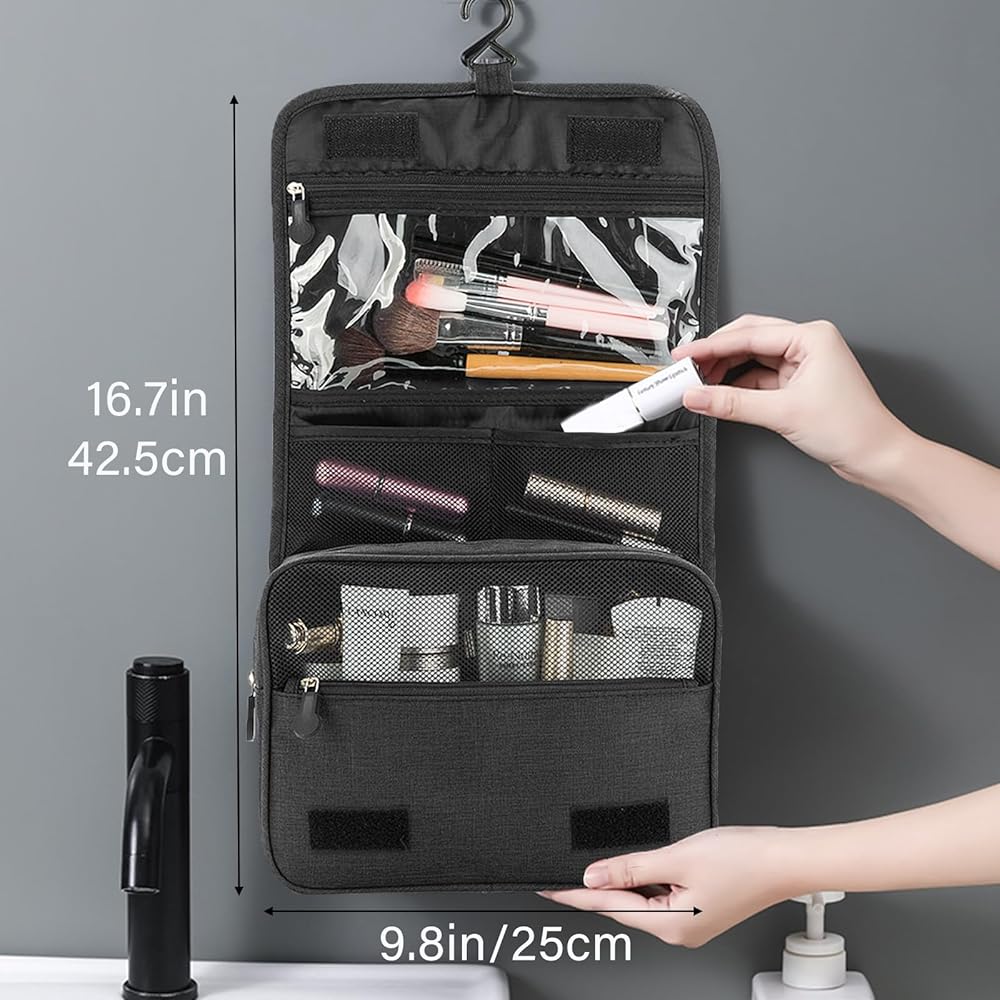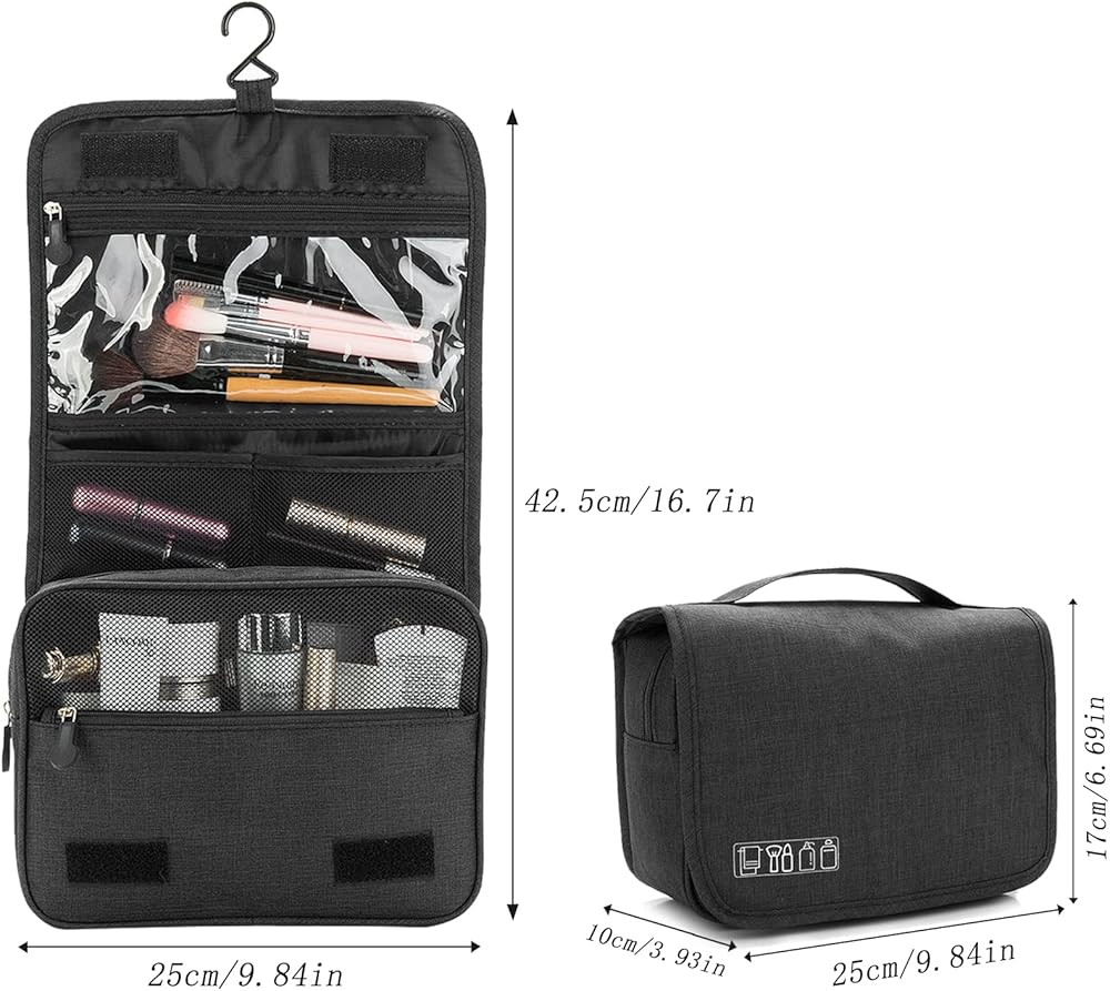سعة كبيرة - حقيبة المكياج المعلقة هي 9.8 × 3.9 × 6.7 بوصة (حوالي 25 × 10 × 17 سم)، و3 مساحات مستقلة، وسحاب وجيوب مفتوحة لسهولة التنظيم. فقط 0.3 كجم، صغير الحجم، قوي، محمول، ومعبأ بشكل جيد.