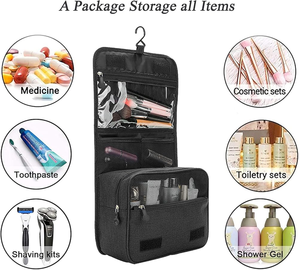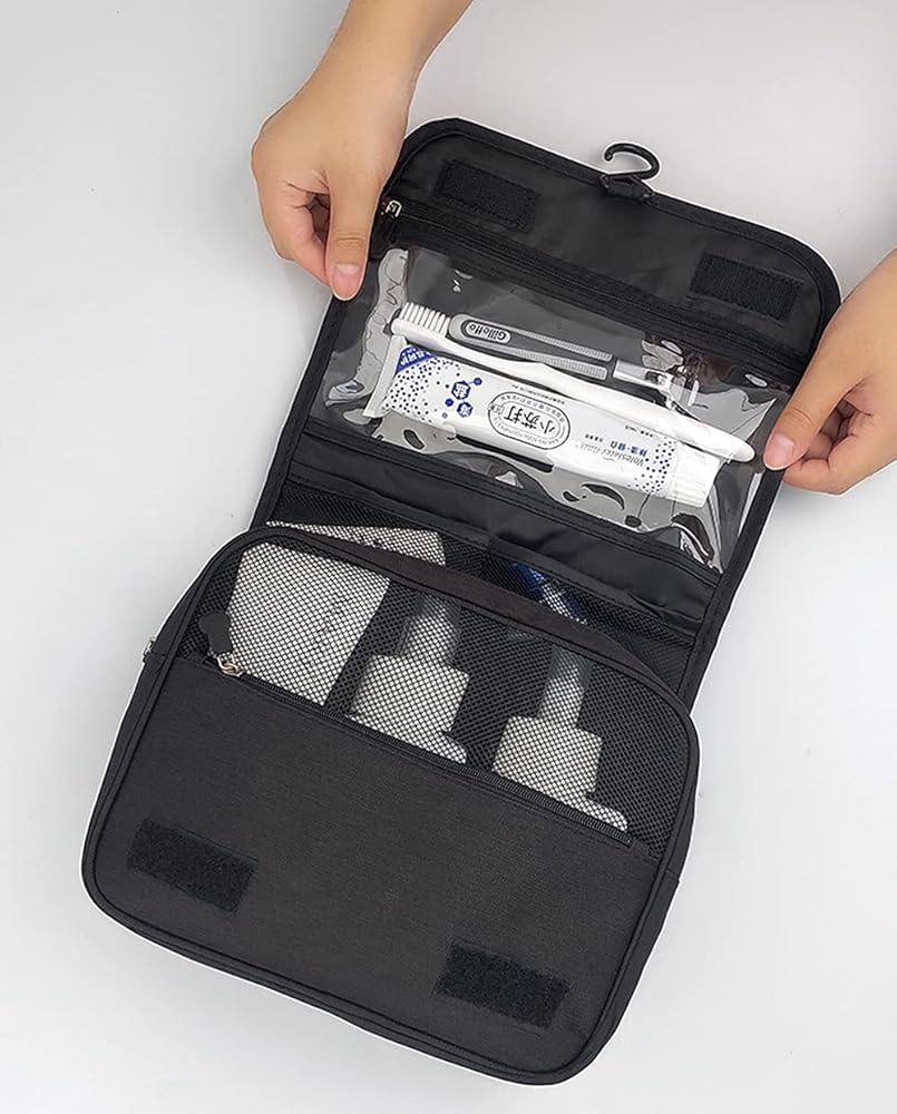 تصميم مريح - يمكن تخزين مجموعة السفر بخطاف معدني غير قابل للانزلاق يدور 360 درجة، ومجموعة متنوعة من خيارات التعليق، والوصول السريع، ويمكن مضاعفة المقبض كحزام تعليق.