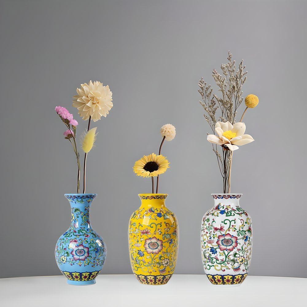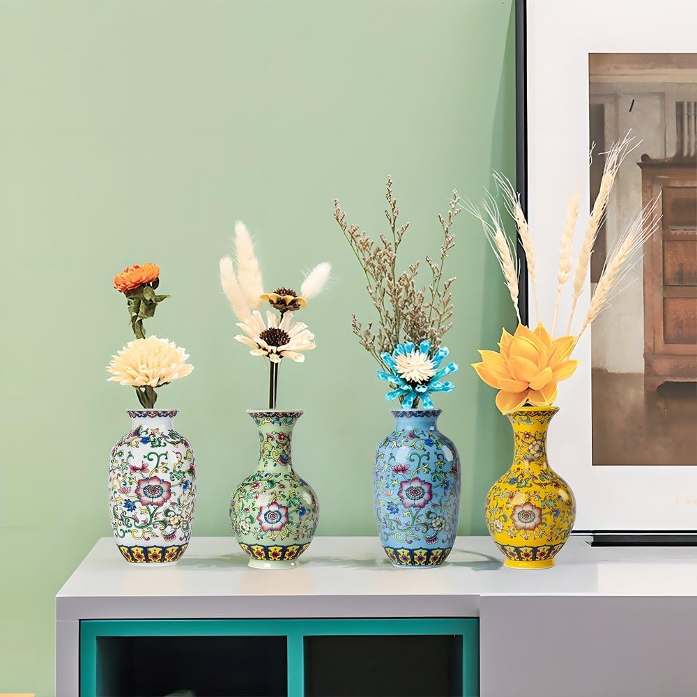 Exquisite Lotus Pattern: This small flower vase, designed for home decor, boasts a traditional lotus pattern. Its intricate design and the lively array of colors enhance its elegant appeal. Whether used as a sophisticated centerpiece or a discreet decorative accent, this vase is poised to add a touch of refinement to any space.