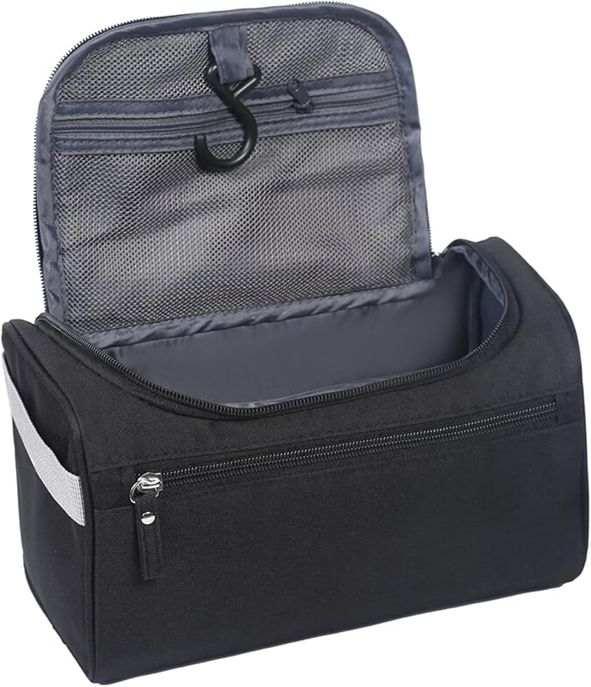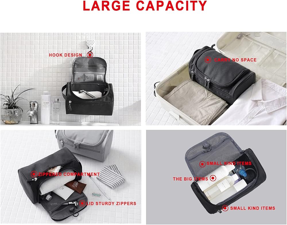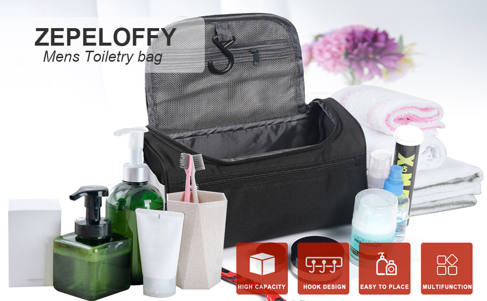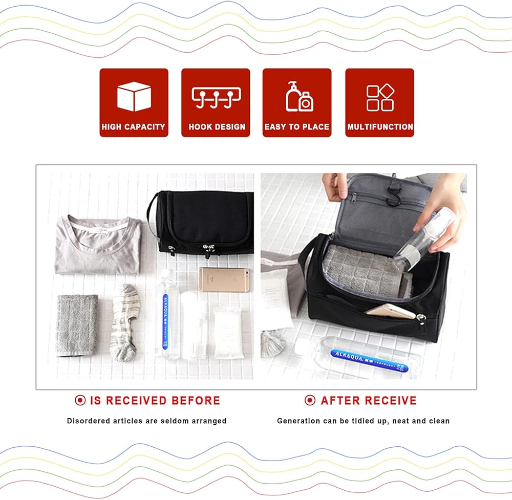 طقم دوب محمول مقاوم للماء يحتوي على جزء رئيسي وحجرة تخزين شبكية مزودة بسحاب وحجرة خارجية بسحاب مما يسمح لك بتخزين جميع مستحضرات التجميل بحجم السفر. يسمح لك الخطاف المرفق بتعليق الحقيبة على الجزء الخلفي من الباب أو قضيب المنشفة.