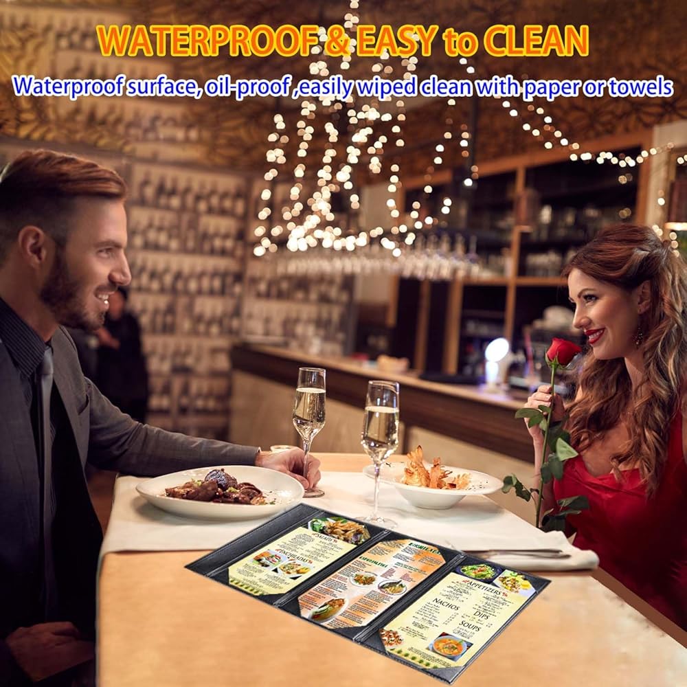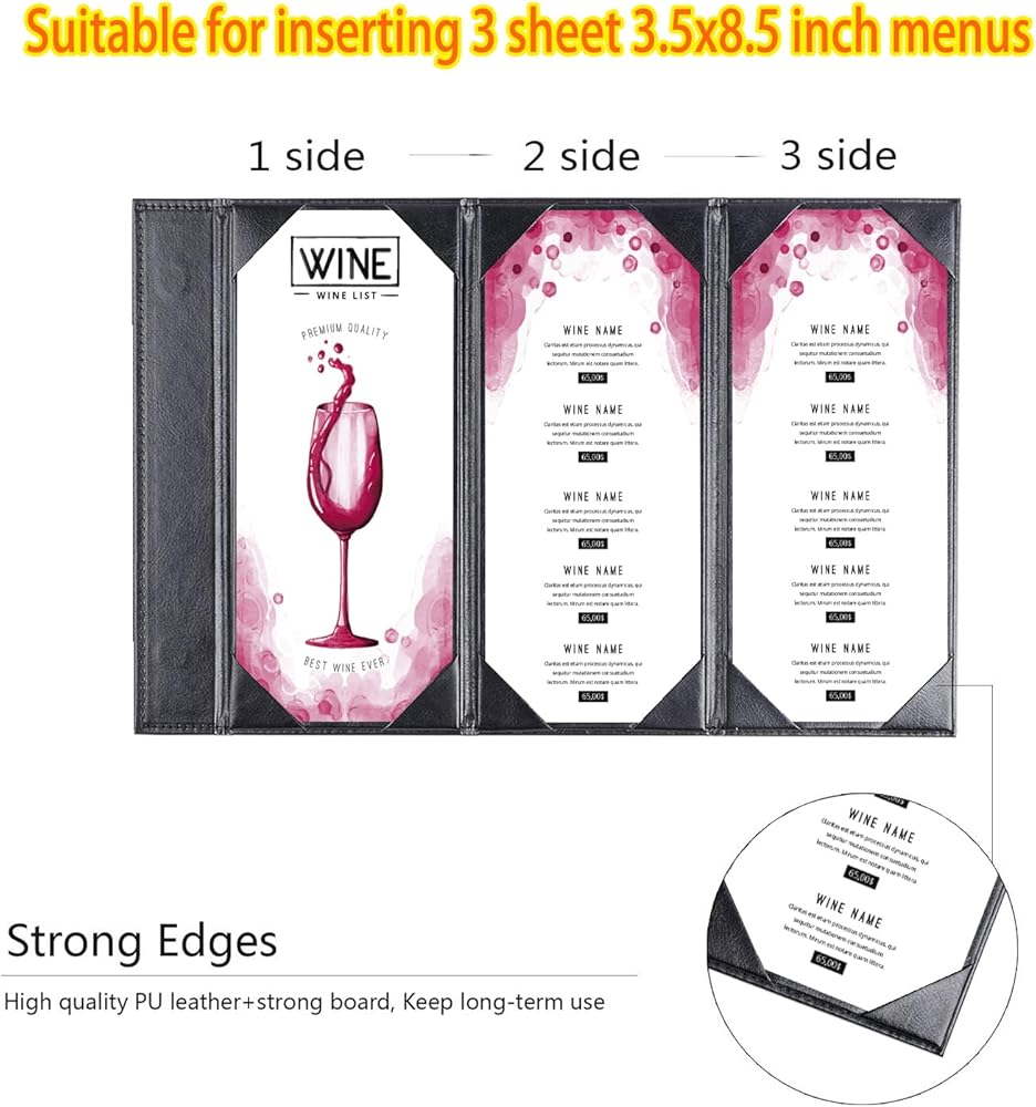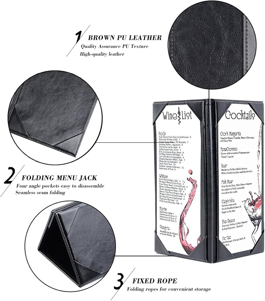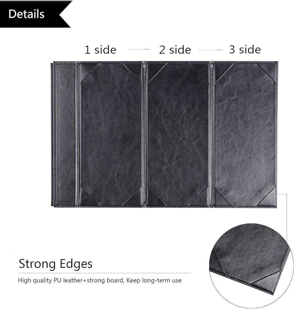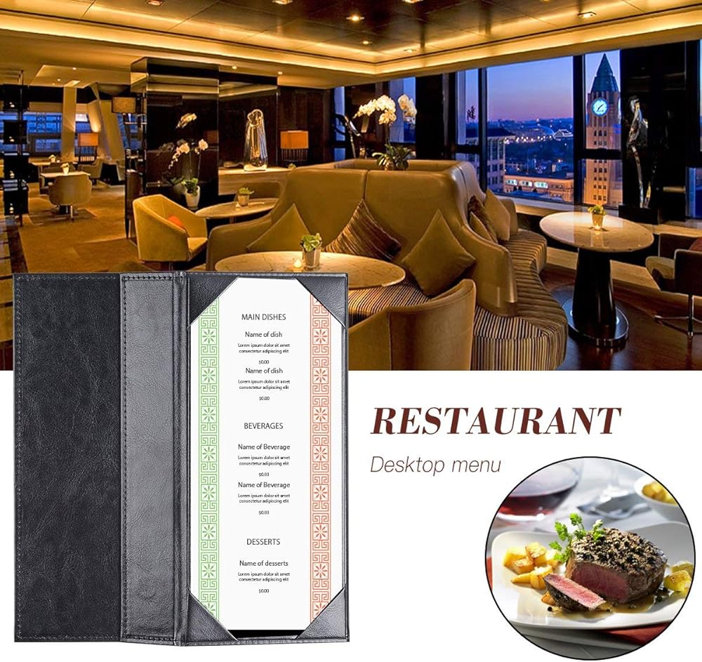 🍸 Simple & Elegant Appearance Design : Our 4.25 x 11 inches menu covers is adopt to triple fold style design with no logo printed inside is suitable for all restaurants, canteens, hotels, cafes, bars, and more! Each leather menu cover has 3 pages with 3 views. Our classically-styled leather menu holder can improve the grade and taste of the restaurant, more attractive to customers.