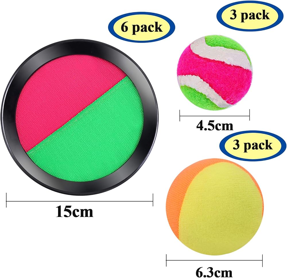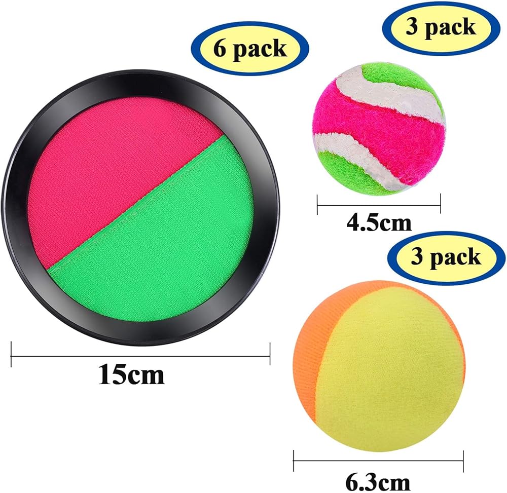 Package: each package includes 3 sets of toss and catch paddles, each set contains 2 paddles, 1 hard ball, 1 soft ball, there are 6 paddles, 3 hard balls, 3 soft balls in total, enough for you and your family and friends to play together and share; we also provide you with 1 black drawstring bag to store paddles and balls