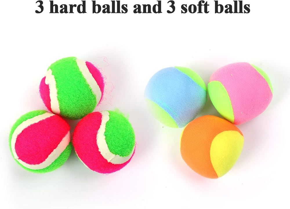 High quality material: toss and catch paddle are made of high quality plastic and nylon, durable and light, not easy to deform and damage, sticky enough, you can easily catch the ball; the hard ball is made of plastic, cement and rubber, light and small, can be easily thrown out; the soft ball is made of sponge and cloth, you can play safely