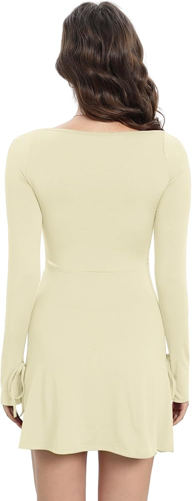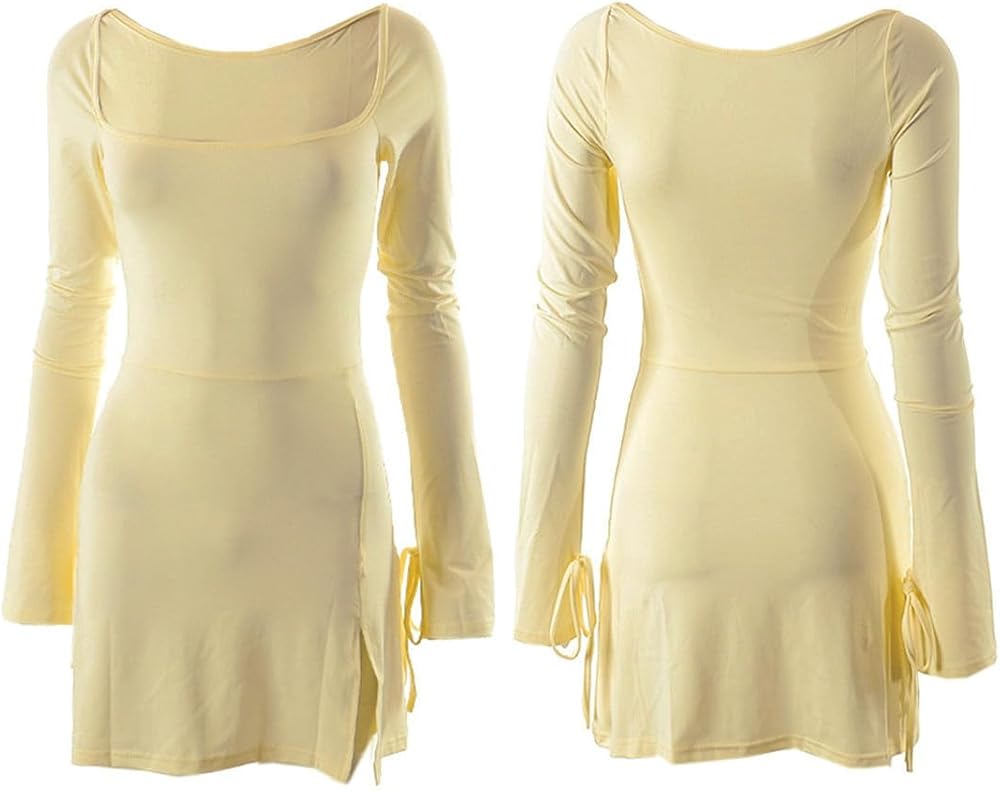 - المزايا: خصر مرتفع، مثير، كم طويل، ياقة مربعة، أرداف مغطاة، فستان فرنسي بلون موحد، يضيف تصميمًا عصريًا، مثير وأنيق، يجعلك تبدو مختلفًا