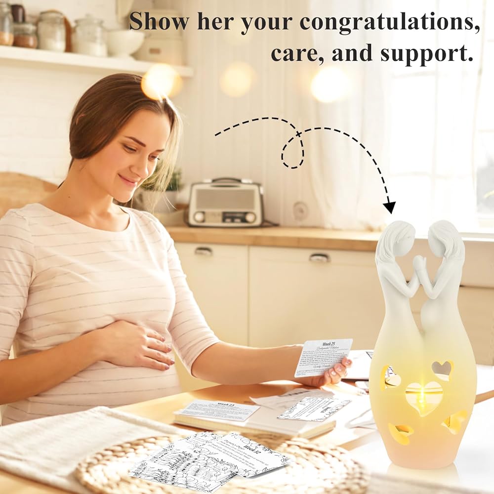 🤰🏻【يجب اقتناؤه أثناء الحمل】في هذه المجموعة، ستحصلين على تمثال شمعة أمومة مع شمعة LED و19 بطاقة مفيدة على الوجهين تغطي 42 أسبوعًا من الحمل. بغض النظر عن جنس الطفل، فإن هذه البطاقات المسيحية المحايدة للجنسين تمثل هدايا رائعة لحفل استقبال المولود الجديد. تأتي في صندوق هدايا وردي مع بطاقة تهنئة بالداخل، مما يوفر عليك عناء العثور عليها. اصنع هدية حمل فريدة لابنتك الحامل أو أختك أو صديقتك أو كهدية لأحبائك في أي صندوق هدايا أو سلة هدايا أطفال مسيحية!