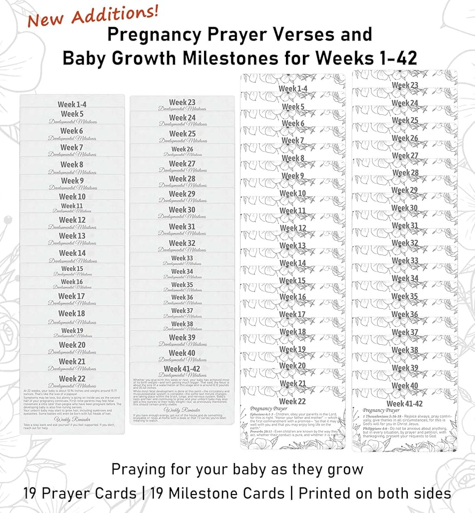 🤰🏻【بطاقات صلاة الحمل】تحتوي كل بطاقة على آيتين بسيطتين من الكتاب المقدس أسبوعيًا لمنح القوة والراحة للنساء الحوامل من خلال الصلاة من أجل رحلة الحمل. اعرض بطاقات الصلاة هذه في المنزل كتذكير للصلاة من أجل هدايا الله. وبنهاية 42 أسبوعًا، ستشمل الصلوات نمو الطفل الجسدي والعقلي والروحي، فضلاً عن القوة والهدوء كأم جديدة. تعتبر هذه البطاقات إضافة رائعة لهدايا الأمهات الحوامل، فهي تلهمهن وترفع من معنوياتهن.