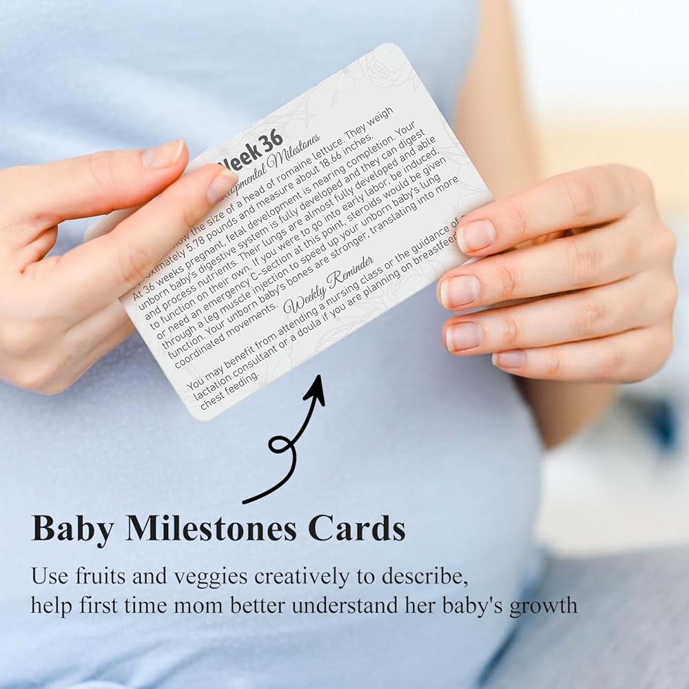 🤰🏻【بطاقات مايلستون للأطفال ودعامة للصور】توفر البطاقات المميزة للأمهات لأول مرة طريقة مبتكرة وممتعة للتعرف على نمو أطفالهن من خلال استعارة الفواكه والخضروات. يمكن استخدام البطاقات كدعائم لصور الأمومة أسبوعيًا أو شهريًا، وستساعدهم هذه العلامات المميزة على الاحتفاظ بذكريات هذا الموسم الخاص من حياتهم. بالإضافة إلى ذلك، توفر التذكيرات الأسبوعية أثناء الحمل إرشادات عملية، مما يمنح الأم الحامل بعض النصائح الاختيارية لتخفيف التوتر والارتباك.