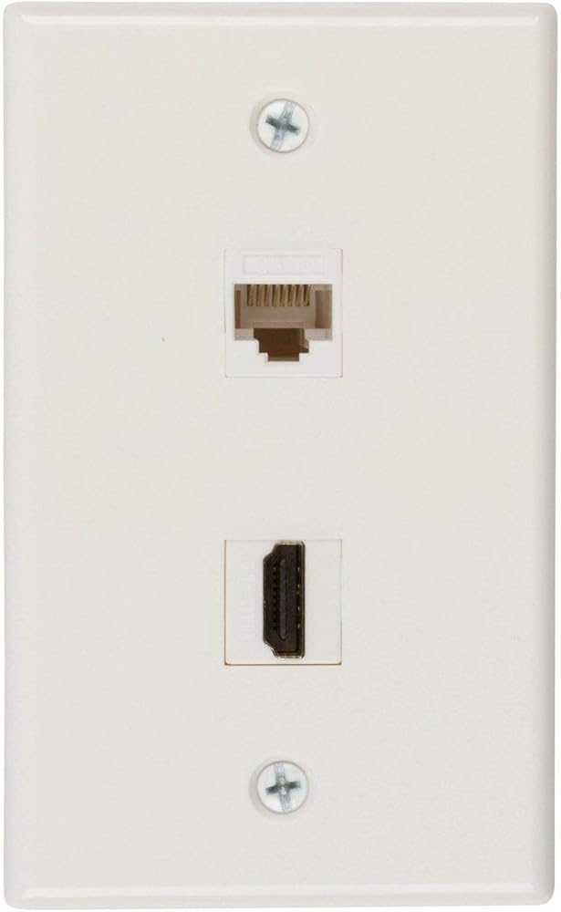 نقطة المشتري لوحة حائط HDMI وإيثرنت | منفذ HMDI 2.0 وCat6 Ethernet RJ45 مدرج في قائمة UL، مثالي لأجهزة التلفزيون عالية الدقة الذكية وأجهزة الشبكة في المنزل أو المكتب (أبيض) - حزمة واحدة