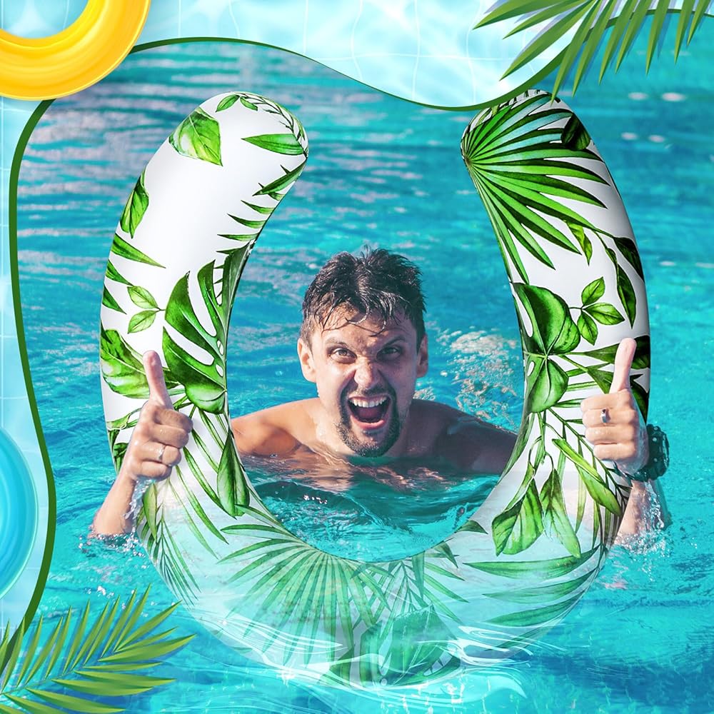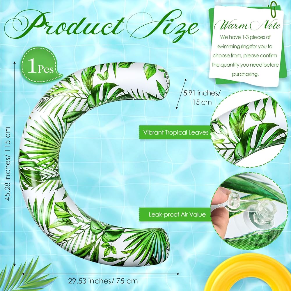 This pool noodles floats for adults brings a fresh jungle vibe, made from durable PVC and designed in vibrant tropical leafy greens. Sized at about 5.91 x 29.53 x 45.28 inches, allows simultaneous play with family and friends. Its stylish curved design enhances stability and comfort, making it a centerpiece for any pool bash.