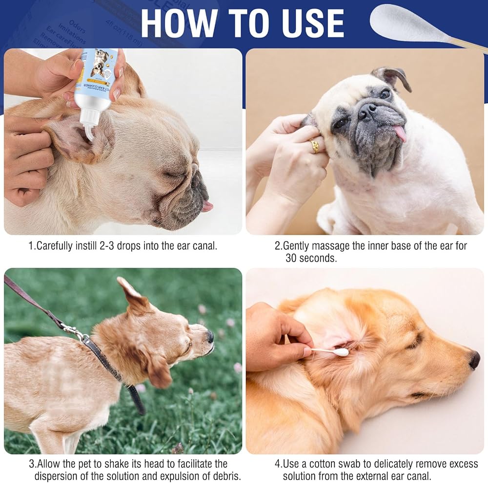 • شطف أذن الكلاب متعدد الاستخدامات: وداعًا لشمع الأذن والحكة والروائح والالتهابات. يتعامل منظف الأذن الخاص بنا مع مشكلات الأذن المختلفة، مما يضمن رعاية شاملة لصحة أذن حيوانك الأليف
