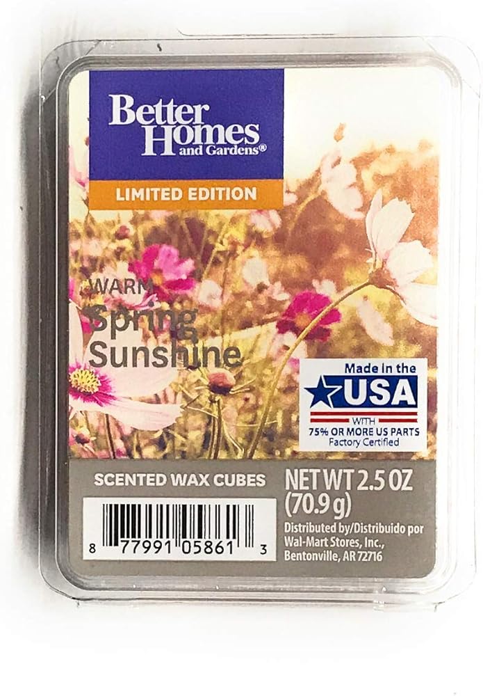 Better Homes & Gardens 2.5 oz (1 Pack) Vanilla & Peach Scented Wax Melt features sweet ripe peach and hints of juicy mango swirl with deliciously rich and creamy vanilla. Look at my pictures, not the limited wax melt, but have the same barcode. Wax Melts are for use in an electric wax warmer and release a soothing highly fragrant scent into the air immediately upon melting so, fill your home or office with a fresh and inviting aroma. Each wax melt pack is divided into 6 cubes, simply break off a piece, add to your favorite electric wax warmer and enjoy. Melted wax does not evaporate; only the scent dissipates after so many hours. When the wax melt loses its fragrance, it's time to swap it out for a new melt! Combine your favorite wax melt fragrances to create custom blends.