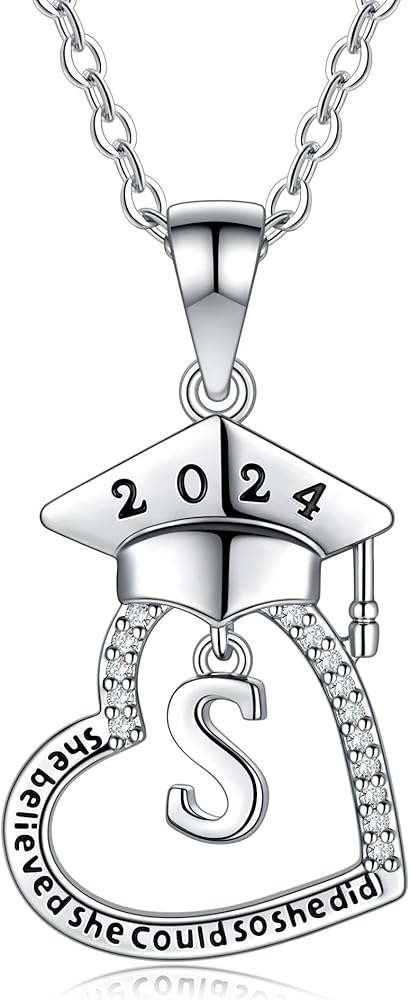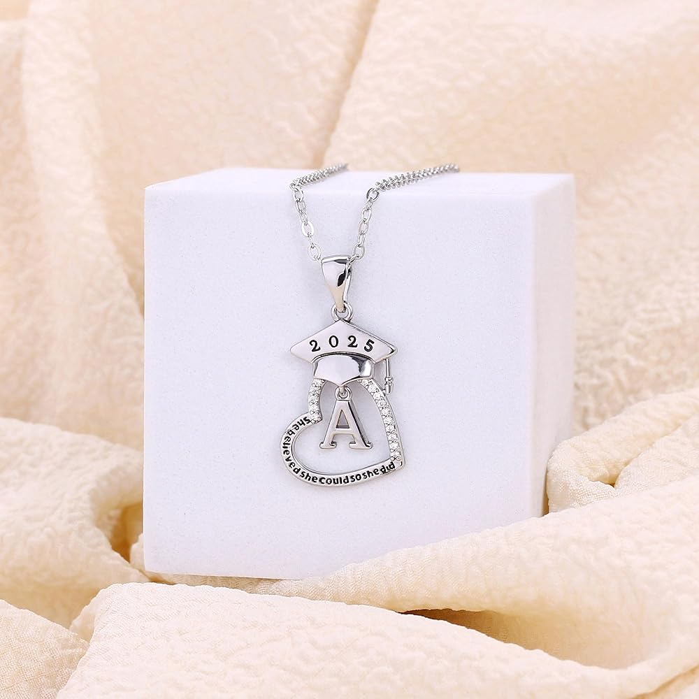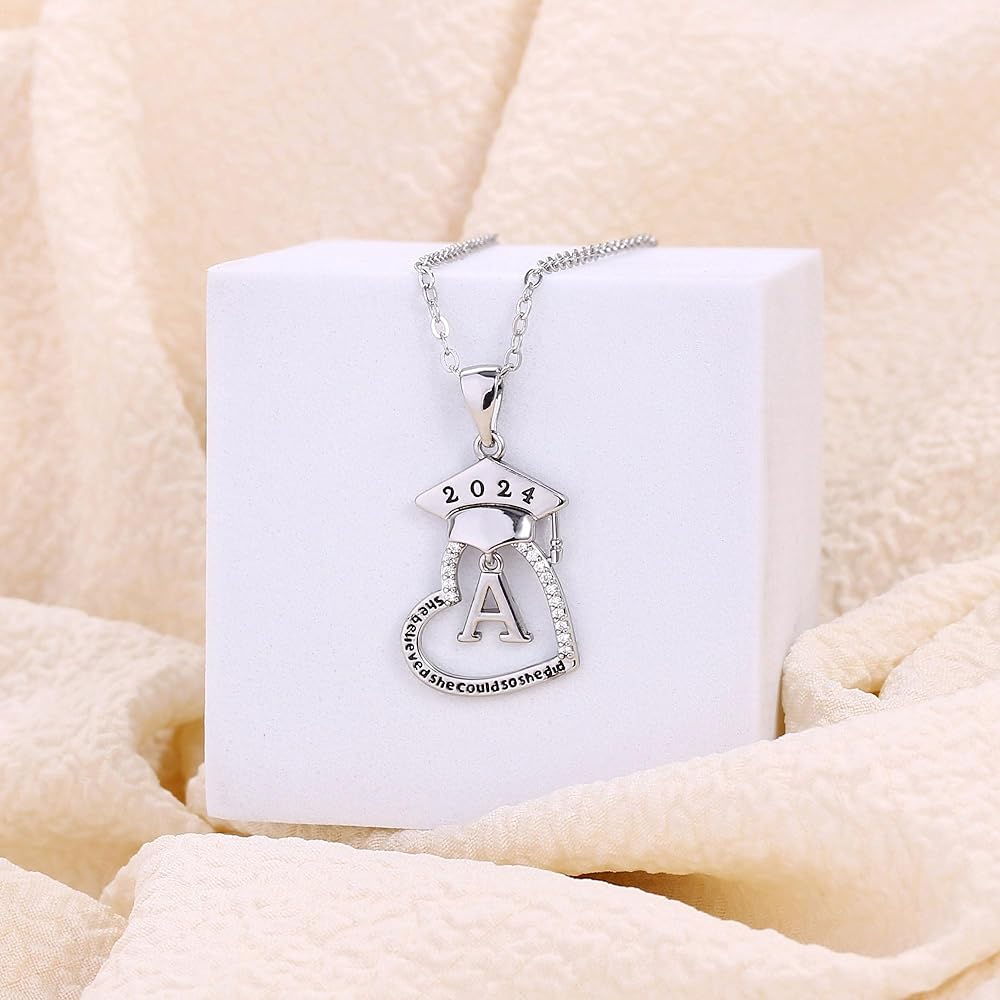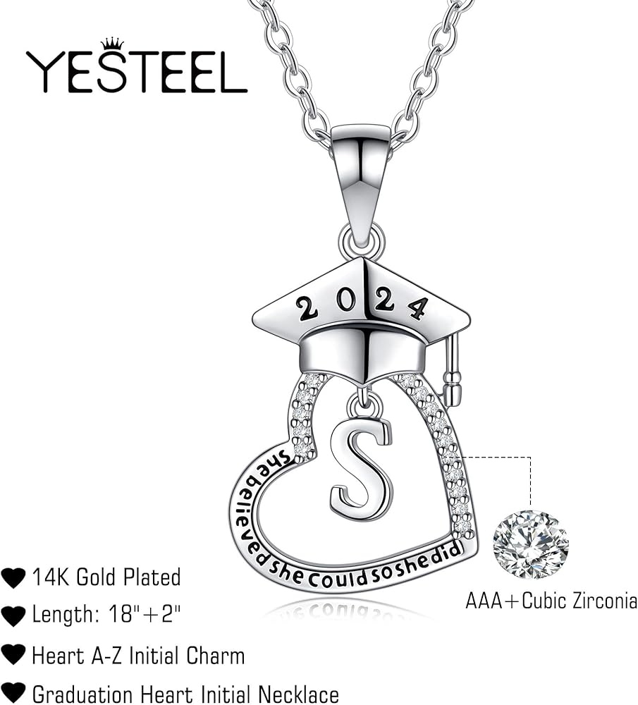 هدايا التخرج لها، دفعة 2024 هدايا التخرج من الكلية في المدرسة الثانوية لأفضل الأصدقاء، قلادات التخرج الأولية على شكل قلب مكعبة من الزركونيا المطلية بالذهب عيار 14 قيراط للنساء مجوهرات