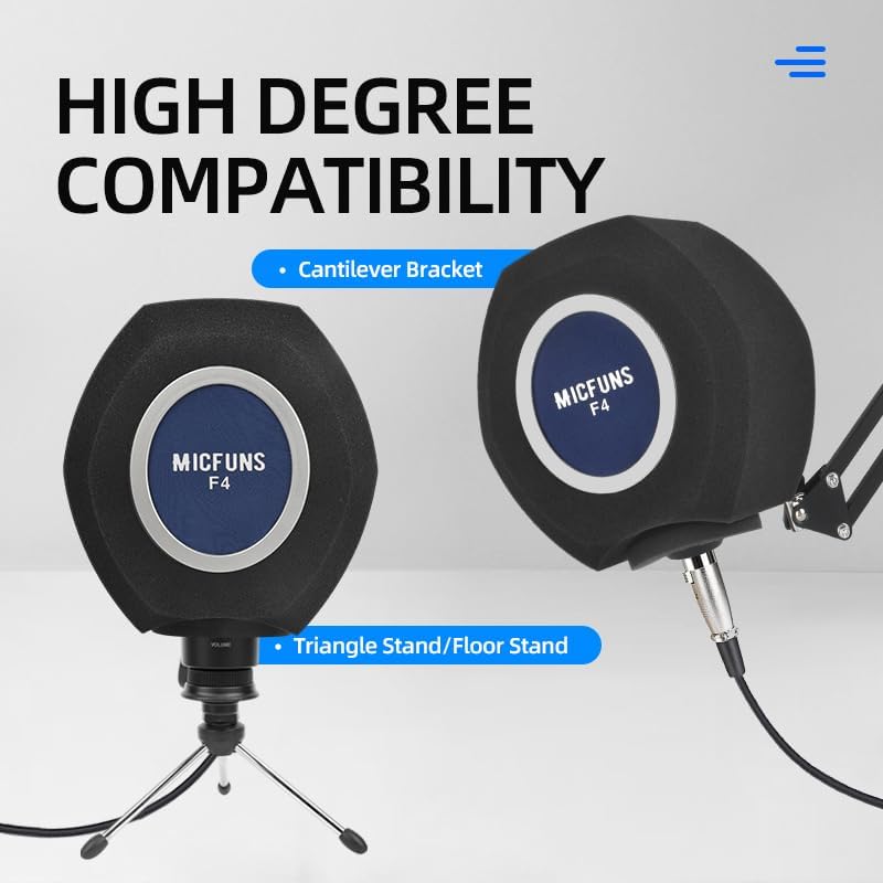 Micfuns F4 upgrage thicker microphone windscreen Isolation Shield pop fliter,Reflection Filter,5 CM thick