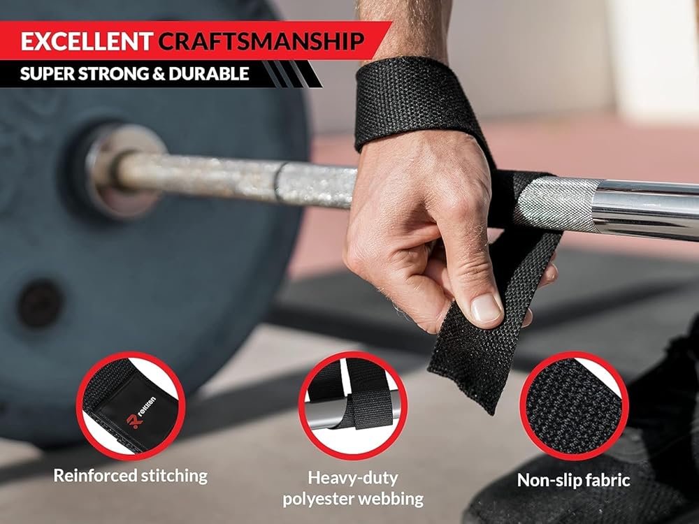 أحزمة رفع الأثقال من ريكين للصالة الرياضية - أحزمة اليد لرفع الأثقال قوية للغاية ومتينة - أحزمة رفع الأثقال للرجال - أحزمة رفع الأثقال للرجال مع خياطة معززة - أشرطة رفع الأثقال