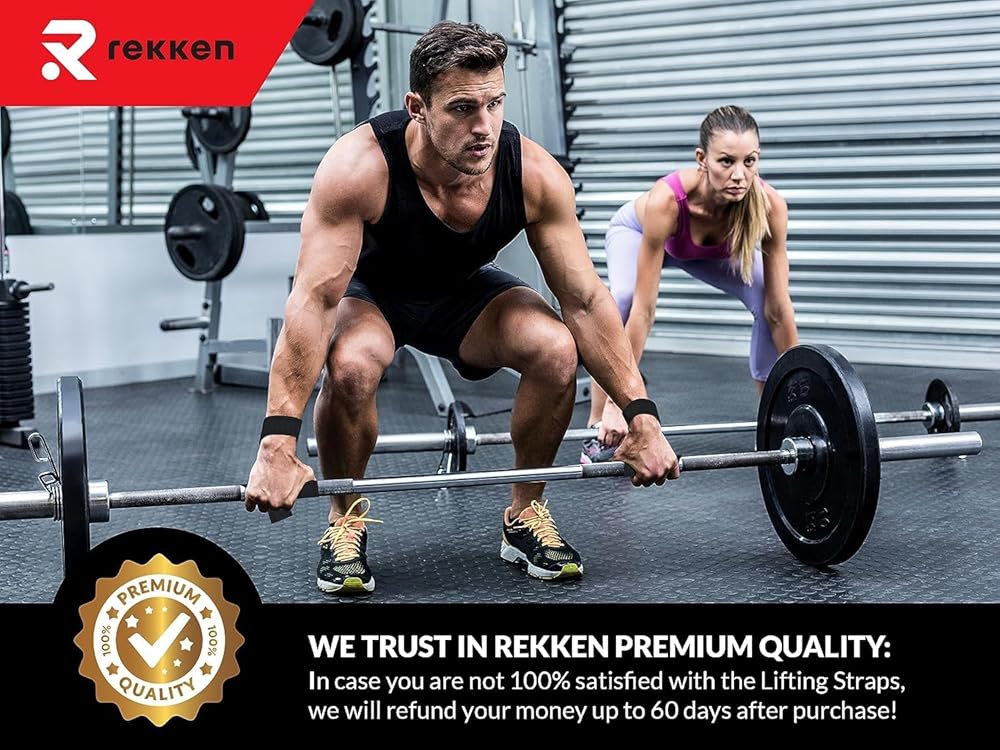 قوة قبضة محسنة - حزام رفع قبضة اليد من REKKEN ولفائف المعصم لرفع الأثقال مصنوعة من البوليستر الممتص للعرق الذي يحافظ على يديك جافة ويمنع الانزلاق أثناء الرفع. تم تصميم لفافات اليد وأشرطة الصالة الرياضية لرفع الأثقال لتحقيق أقصى قدر من الأداء والسلامة!