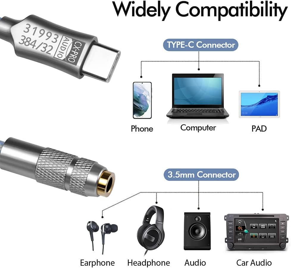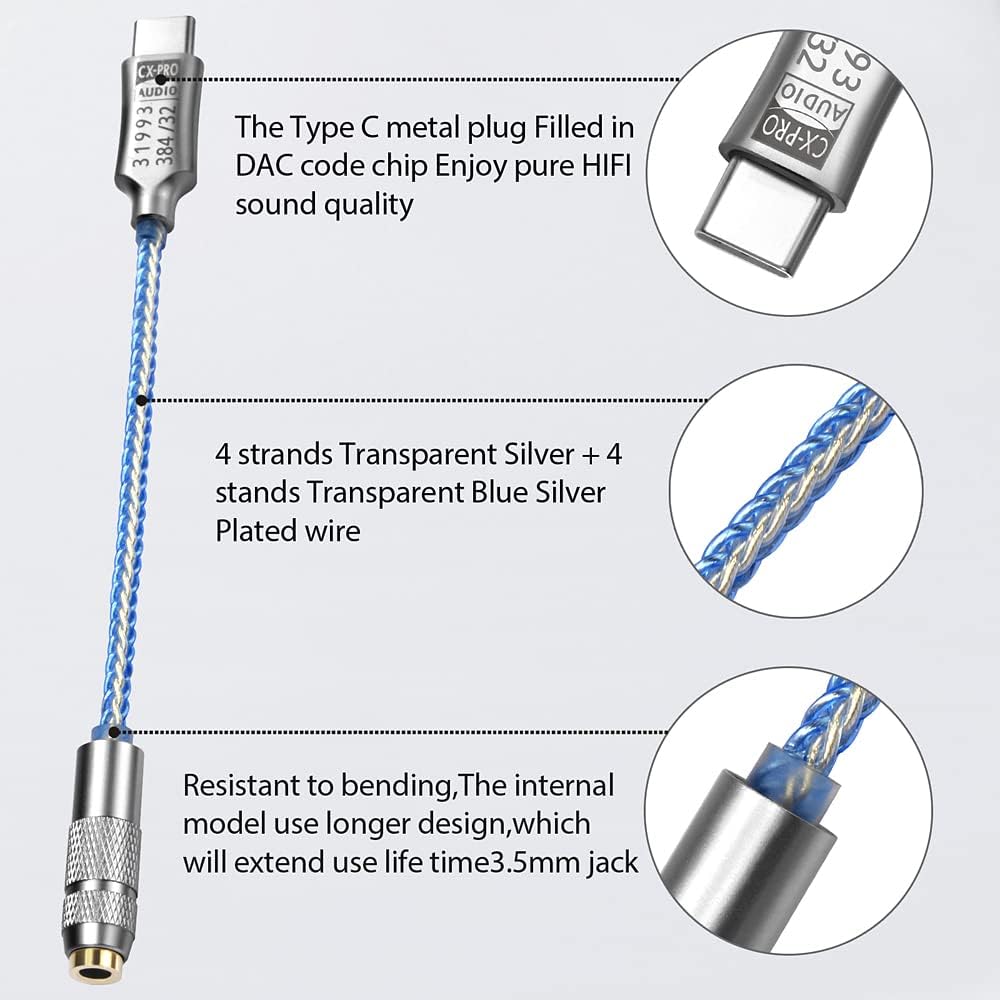 محول USB C إلى 3.5 مم CX31993 Earbuds CX-PRO DAC مضخم سماعة رأس مع مخرج 3.5 مم للهاتف متوافق مع iPhone 15 Pro Max Plus وGalaxy S23 Ultra وPixel 7 iPad Android Windows