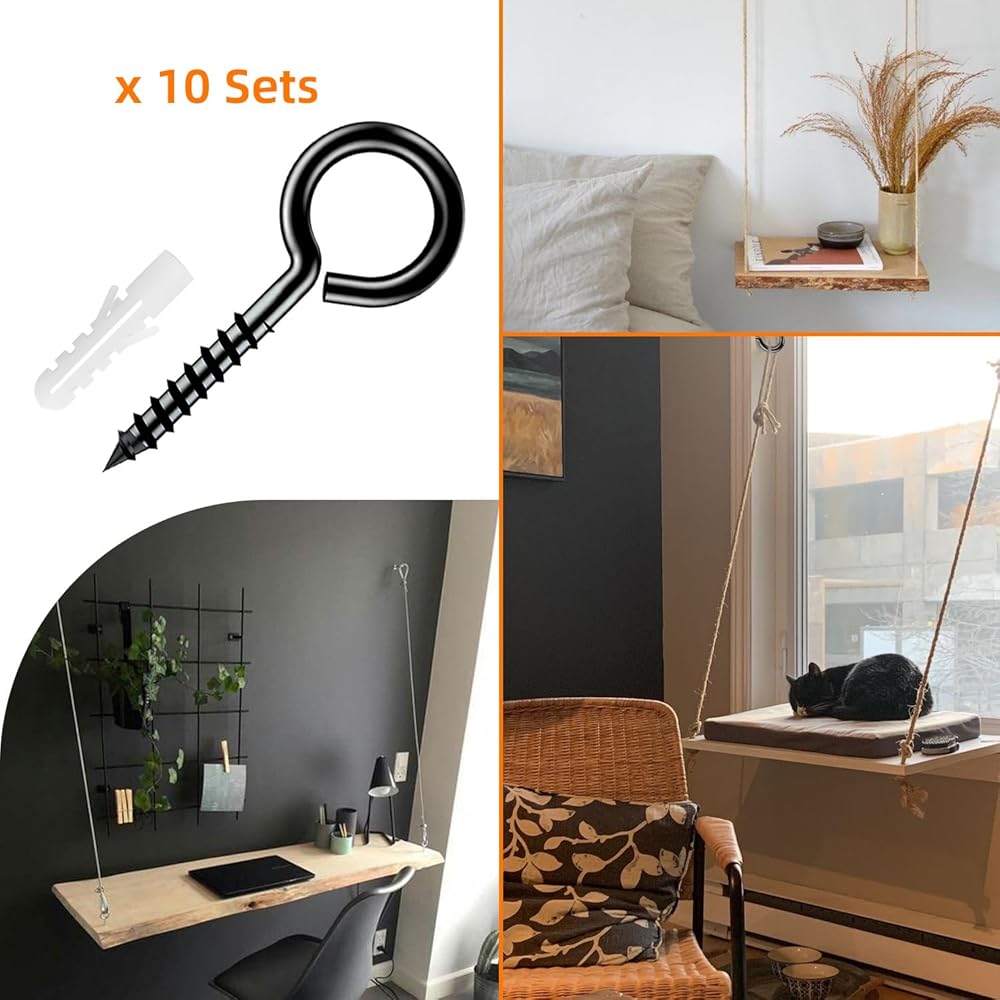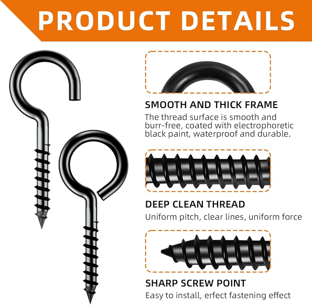• Premium Material: Eye bolts for plants outdoor, the surface is used black electrophores is process, to enhance the corrosion and rust resistant for indoor or outdoor use, can be installed on patios, gardens, sun rooms