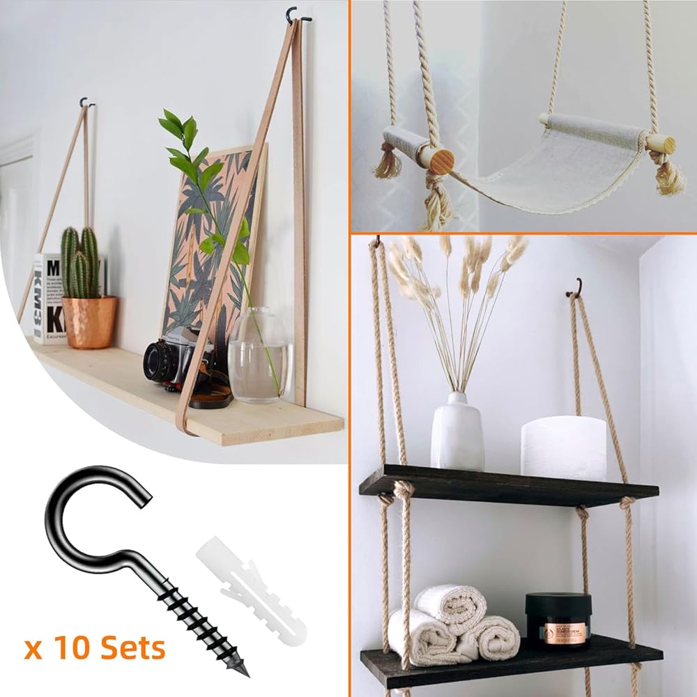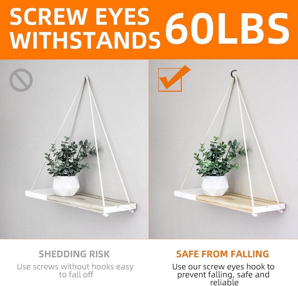 • Heavy Duty eye Screws: Screw eyes that holds up to (150 lbs/ 68kg), does not break easily for indoor or outdoor use, bedrooms, bathrooms, closets, garages, hallways