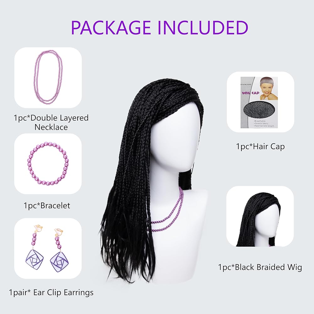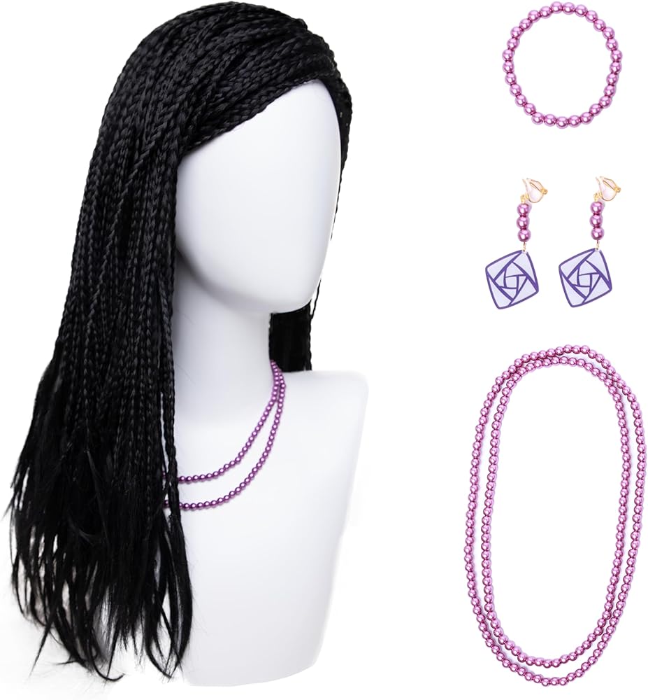 [تشمل العبوة]: قطعة واحدة * شعر مستعار أسود مجدول + قطعة واحدة * قلادة + قطعة واحدة * مشابك أذن + قطعة واحدة * سوار
