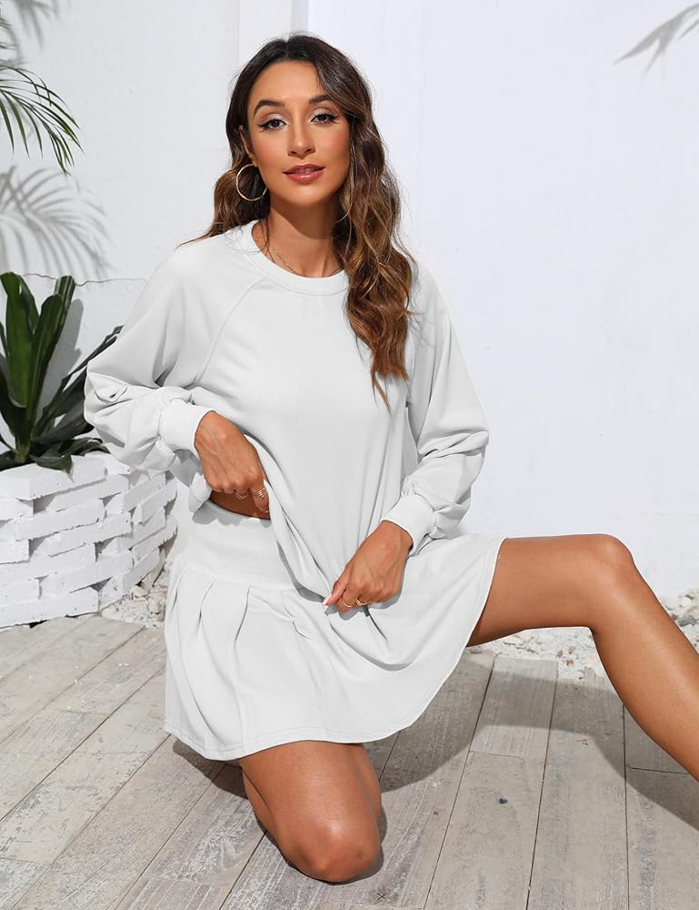 ❤ سويت شيرت صيفي مكون من قطعتين يتميز بتنورة قصيرة عالية الخصر مع بطانة كاملة، بلوفر بأكمام طويلة، أساور مضلعة، بدلة رياضية صلبة