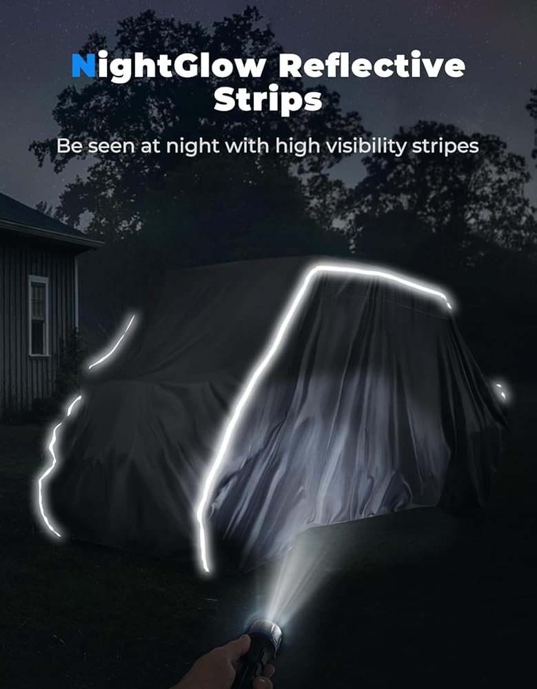 كن مرئيًا في الليل - يتميز الغطاء الأقصى بشرائط عاكسة طويلة على كلا الجانبين، مما يوفر مساحة سطح عاكسة كبيرة لإشارات تحذير أكثر فعالية لمنع الاصطدامات بعد الوقوف ليلاً.