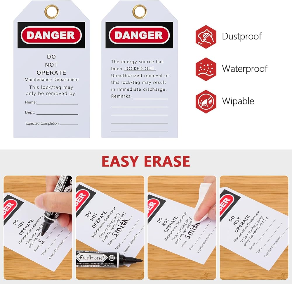 • Do Not Operate Tags:The Lockout tags made of quality heavy duty 16mil thick PVC vinyl material with a surface that is easy to write on