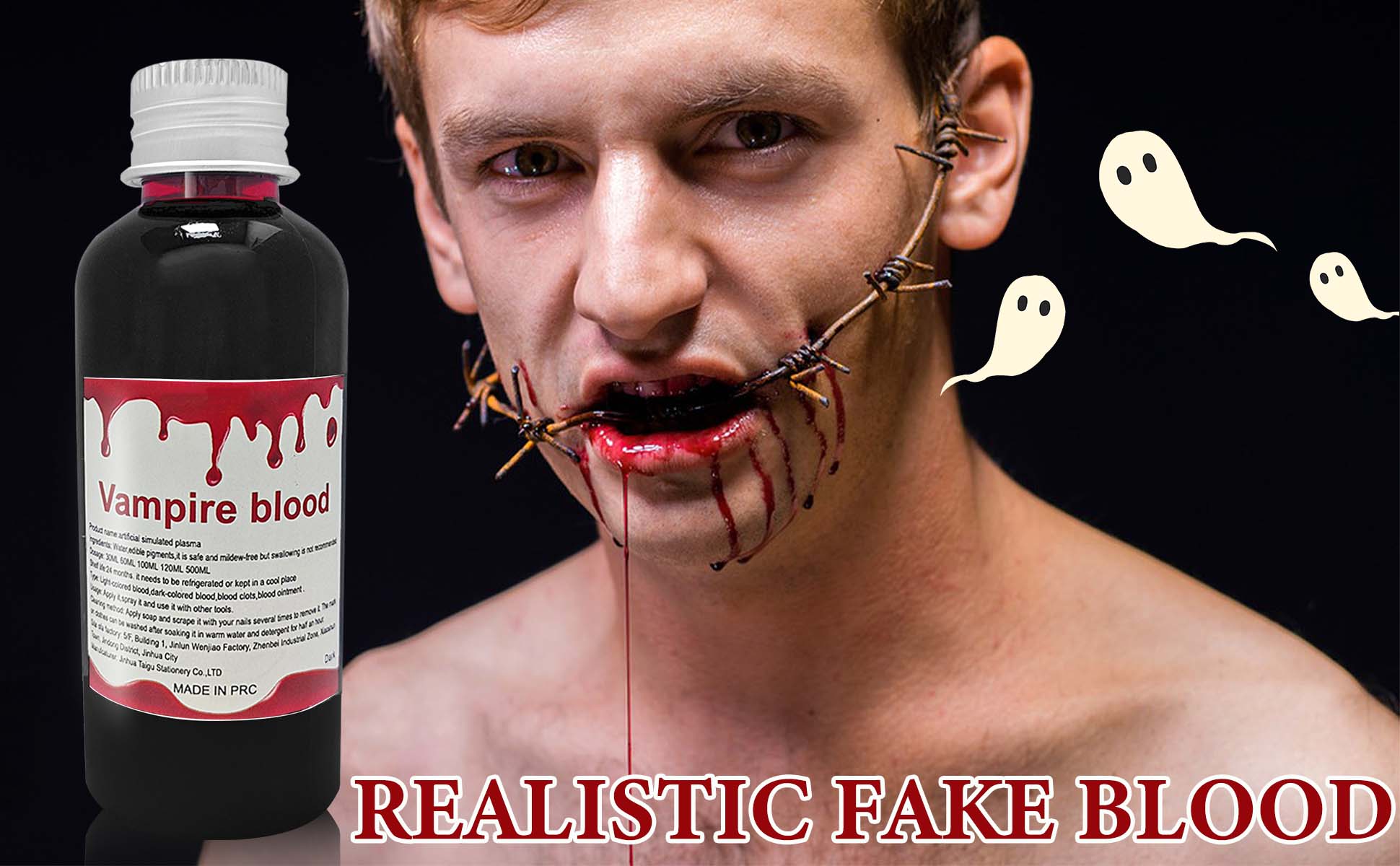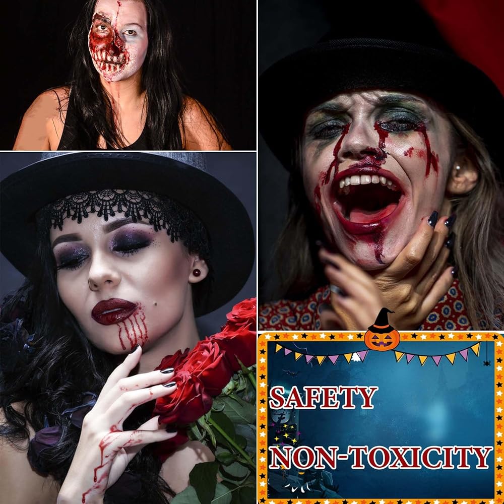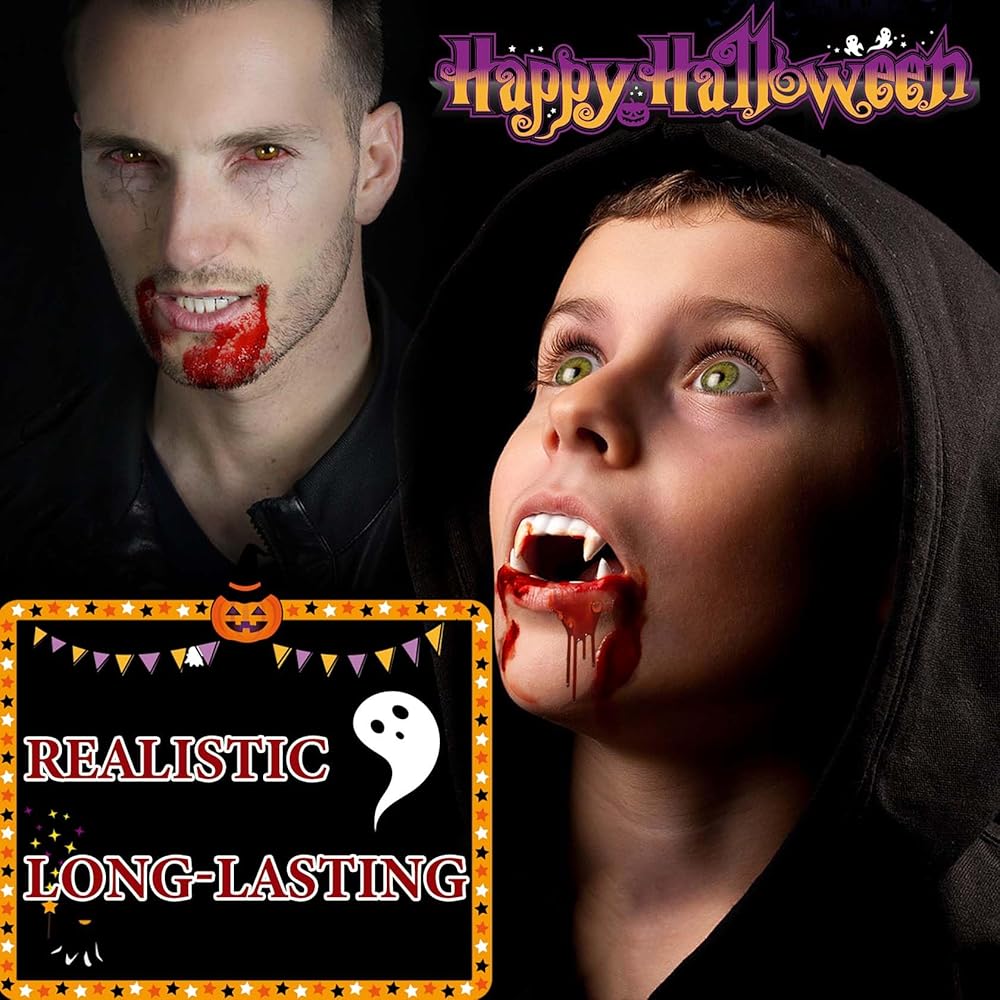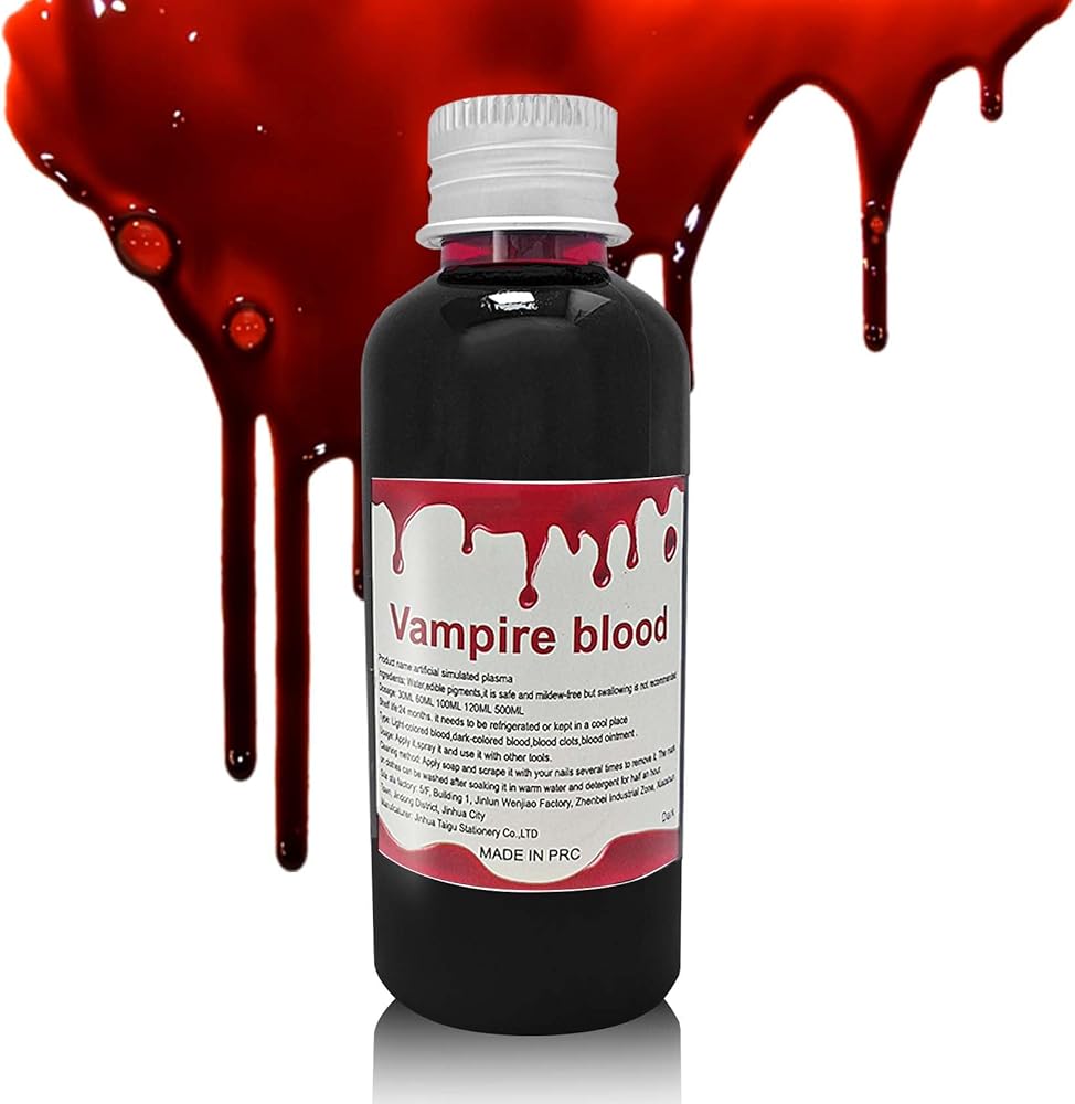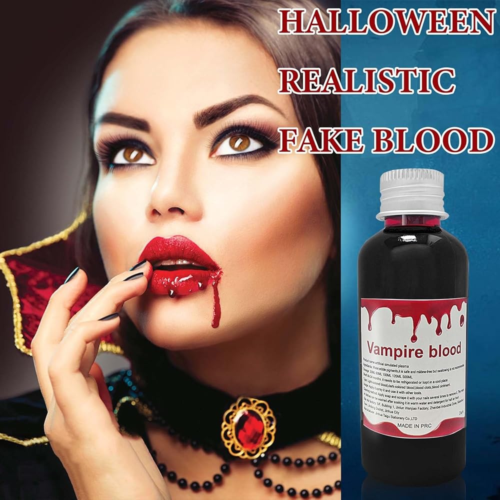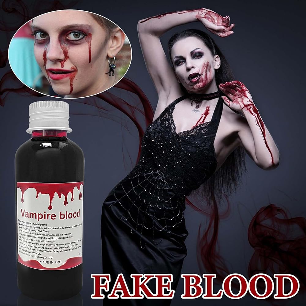 👀【تأثير نزيف واقعي】لون الدم المزيف أحمر داكن، سيولة جيدة، يمكن أن يظهر تقطير الدم وتأثير نزيف طبيعي واقعي، تدفق التأثير يشبه الدم الحقيقي في التدفق، لخلق زومبي مخيف ومصاصي دماء وحفلات تنكرية و مكياج SFX آخر.