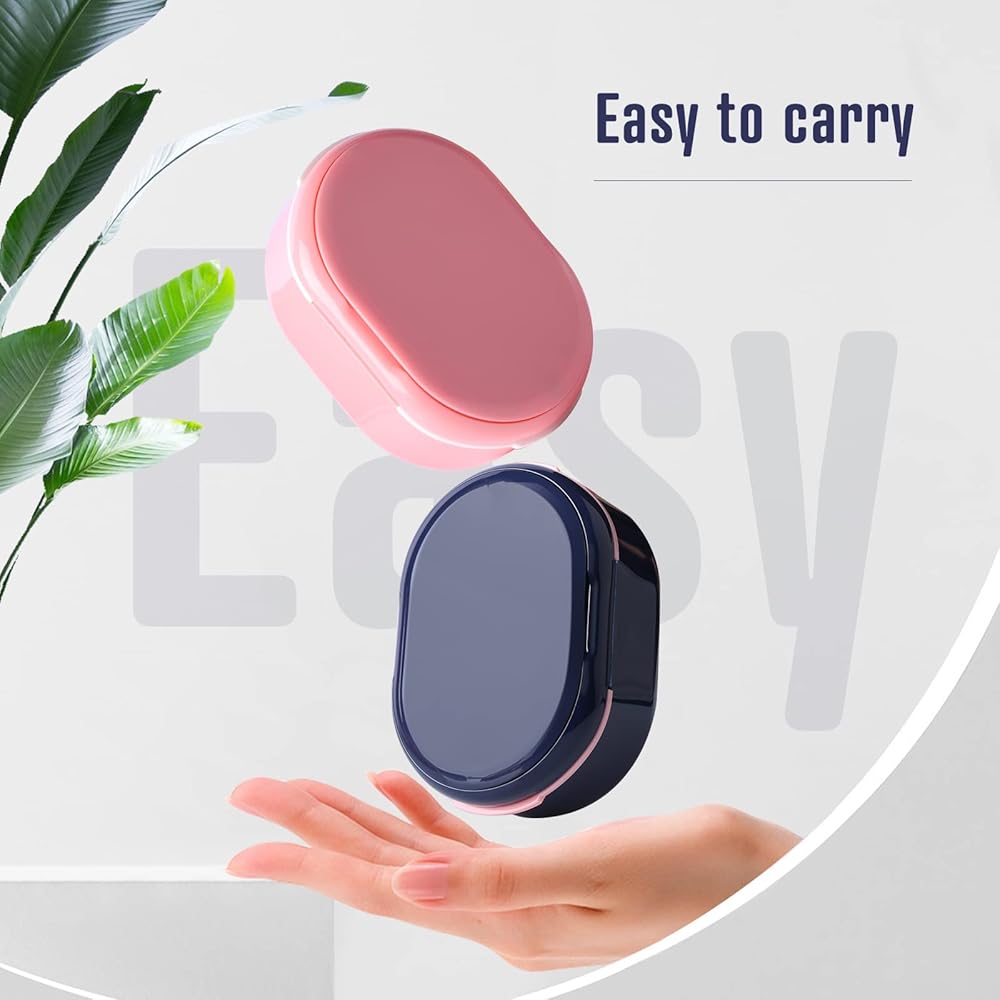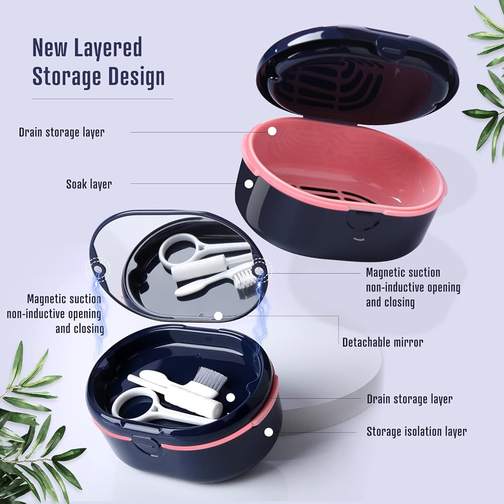 • مرآة مغناطيسية مريحة: تأتي حقيبة سفر طقم الأسنان مع مرآة مخفية مرفقة بمغناطيس، مما يجعل من السهل الحفاظ على نفسك في حالة مثالية طوال الوقت. (ملاحظة: يجب محاذاة المرآة مع المغناطيس).