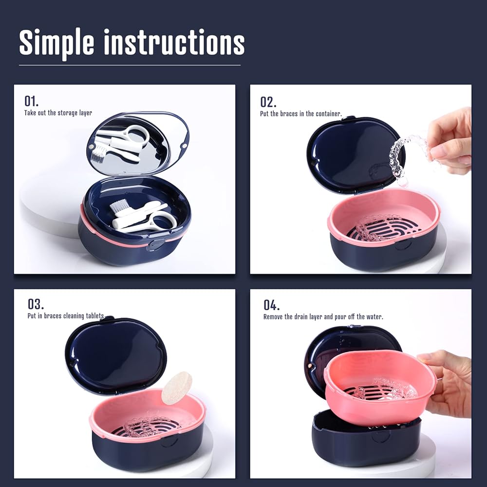 • تصميم أنيق: صندوق أكواب حمام الأسنان الخاص بنا، حامل أسنان كاذبة محمول، حاوية تخزين، حاوية تثبيت لتقويم الأسنان مع سلة مصفاة لتنظيف السفر، يتميز بتصميم عصري وأنيق من المؤكد أنه سيلفت الأنظار.