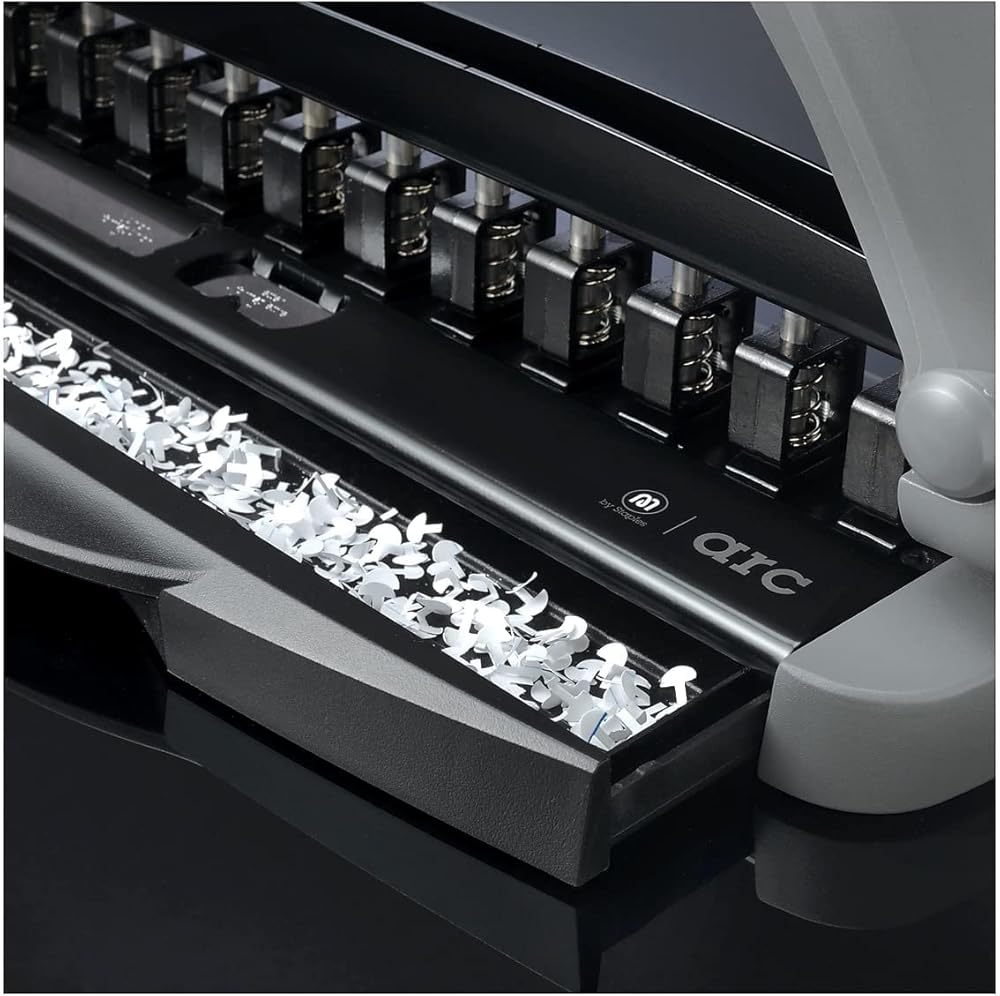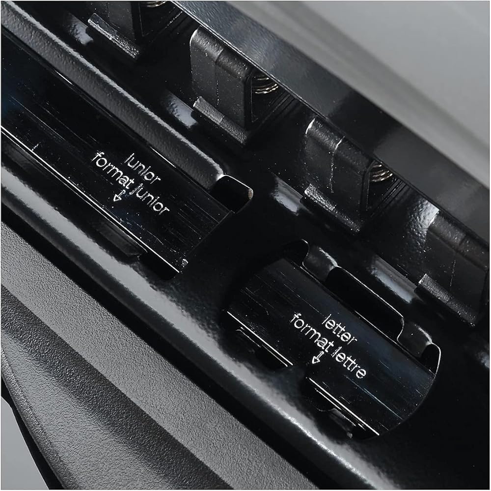 FLEXIBLE SIZING: This desktop hole punch is compatible with letter-size and Arc junior paper, making it easy to customize your office notebooks. Simply slide the adjustable paper guides into position for quick size adjustments.