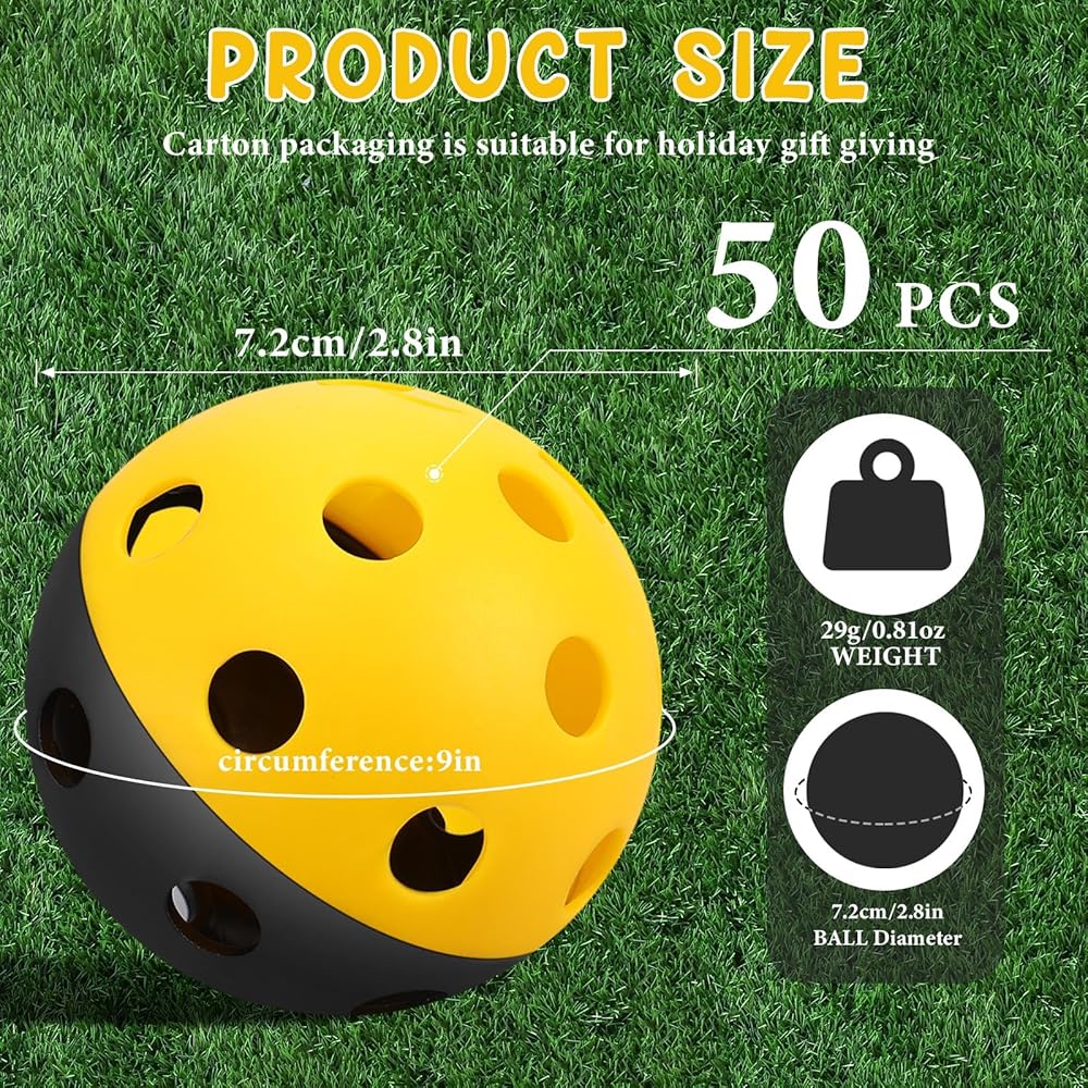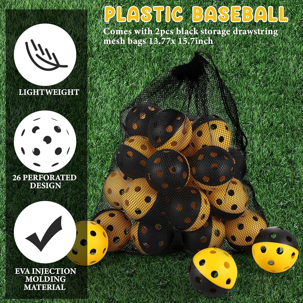 • Complete Package: you will receive 50 pieces of black and yellow splicing plastic baseballs, complimentary 2 black mesh bags and 1 box, enough to meet your daily use, replace and share needs; You can apply them to practice pitching and batting skills with your child or friends in your spare time