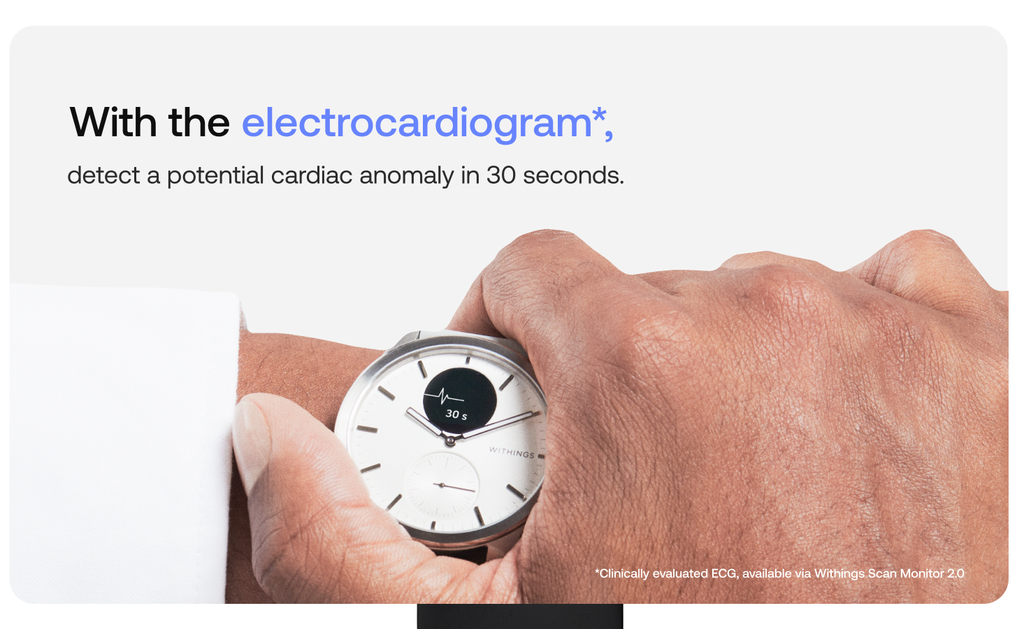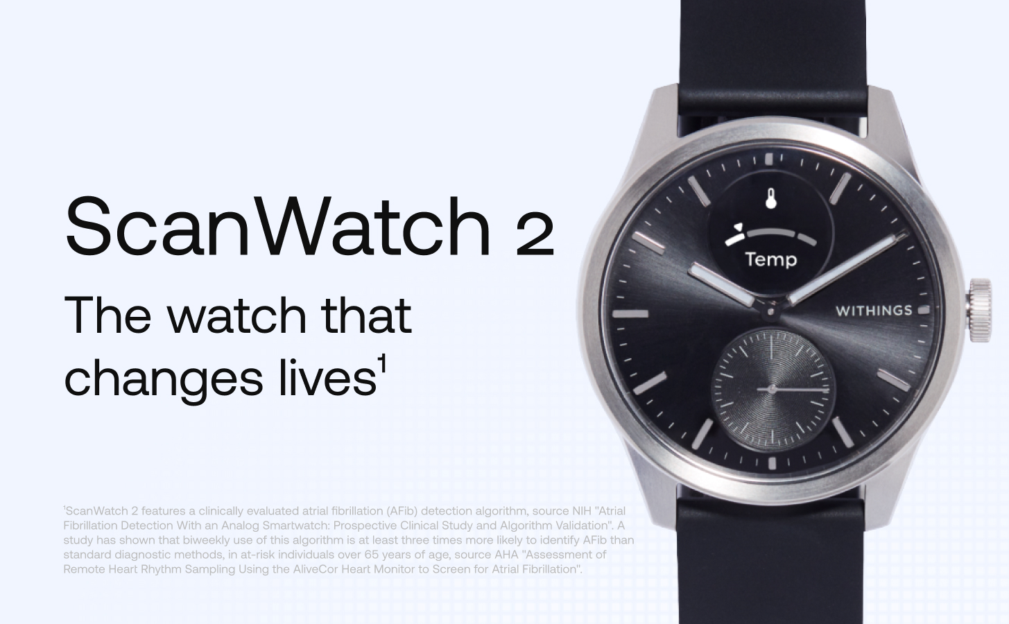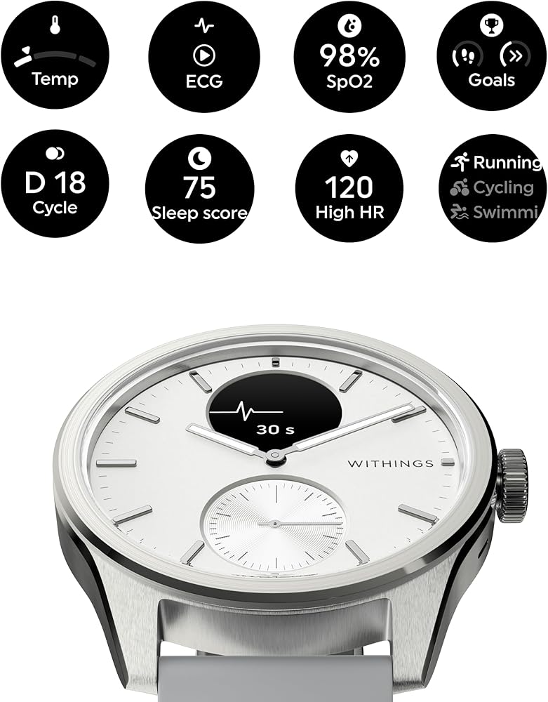 A design hybrid smartwatch with proactive health tracking. Nested in a high-end watch, state-of-the-art medical technology has been carefully selected to create the most health-oriented watch ever offered to the public.