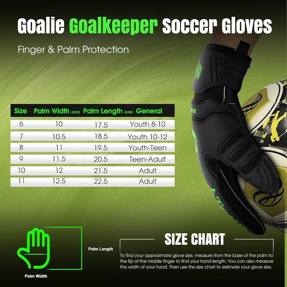 مسامية: قفازات حارس المرمى مصنوعة من لاتكس DUMBEX عالي الجودة، قفازات كرة القدم هذه قوية جدًا بحيث يصعب تقسيمها سواء كانت في جسم شبكي من قماش الجاكار الشرس جيد التهوية لجعلها أكثر راحة، وهو رائع للعب حارس مرمى كرة القدم في الأجواء الساخنة. أو المناخات الرطبة. خفيف الوزن ومريح للغاية. يرجى القياس وفقًا لمعلومات المقاس للعثور على المقاس المناسب لك