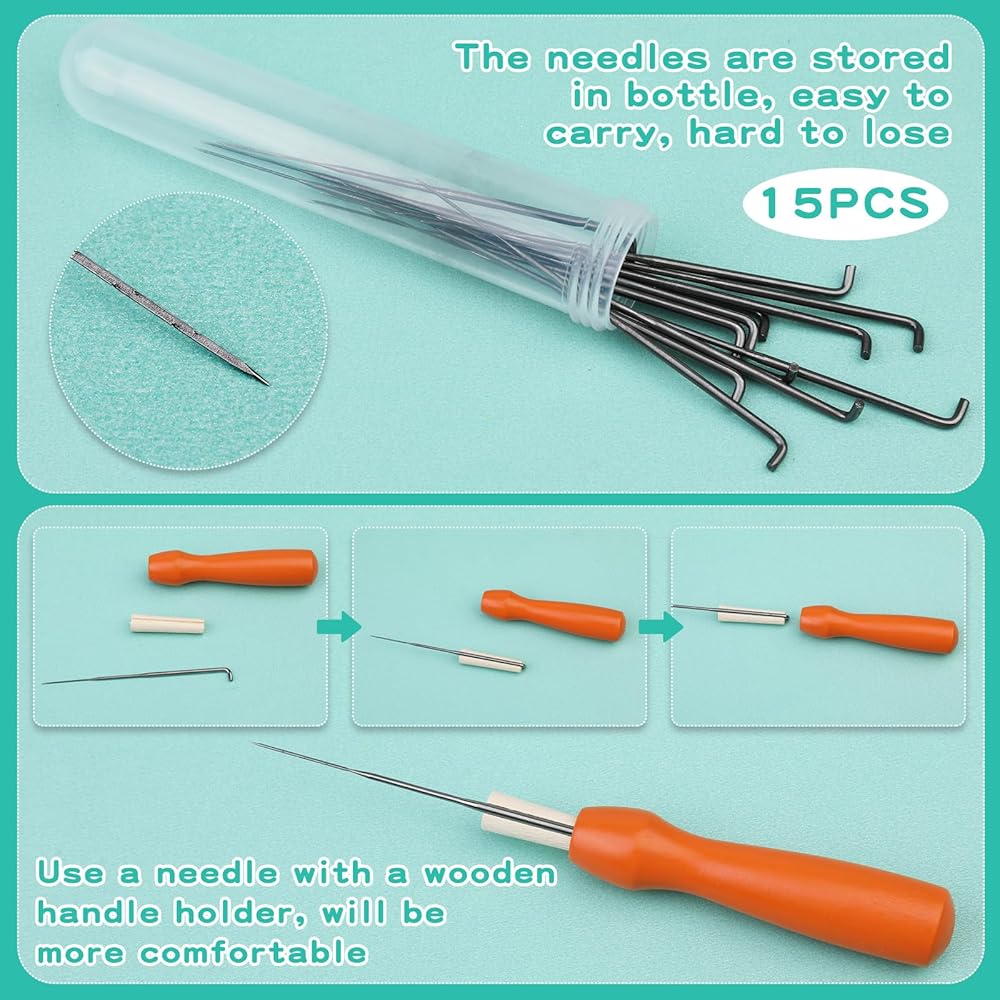 ❣نصائح - عند استخدام إبر اللباد، يرجى محاولة وضع الصوف عموديًا لمنعه من الاهتزاز؛ حجم وسادة الرغوة كبير بما فيه الكفاية وخفيف ومتين؛ نحن نقدم أيضًا زجاجة إبرة شفافة لإبر الوخز الـ 15 لمنع إبر الوخز من التدحرج إلى أسفل تجربتك السيئة.